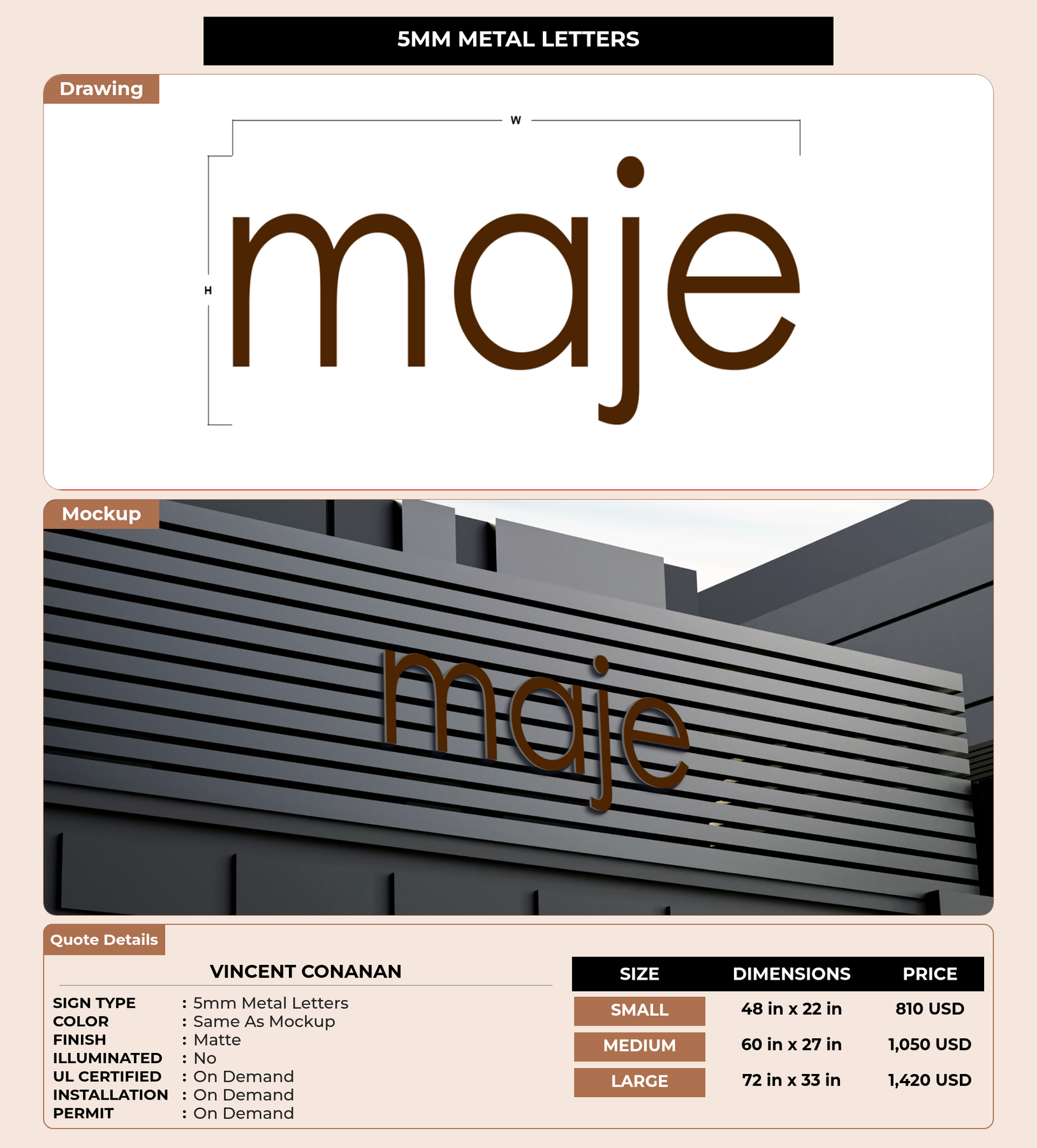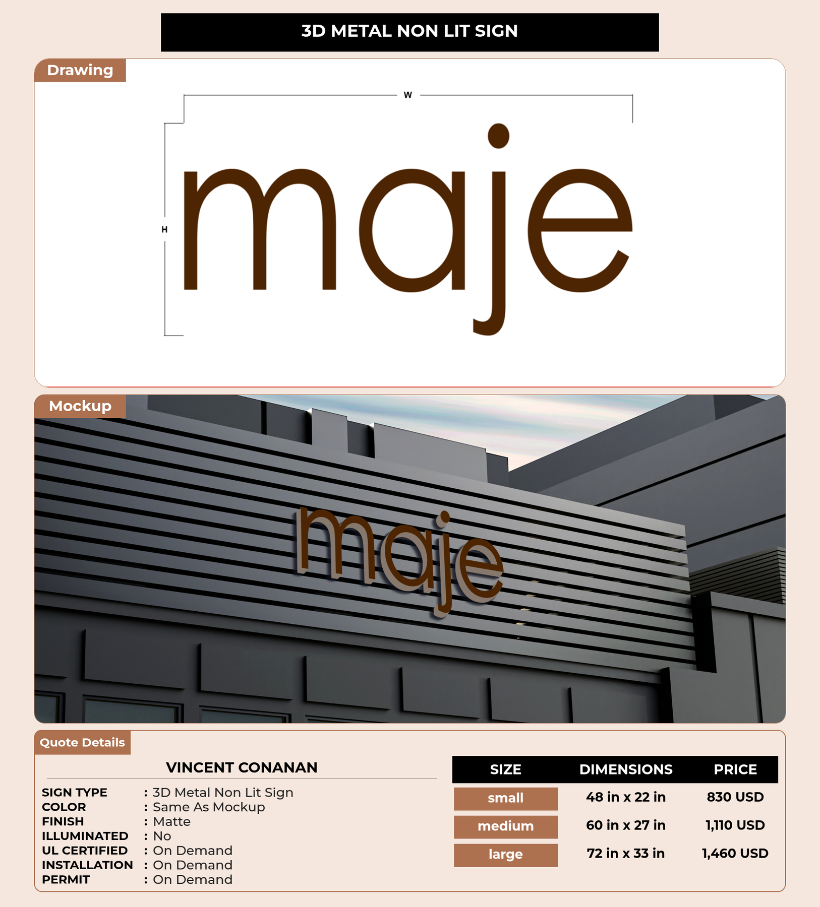 Enhance your business presence with our expertly crafted signage, made from top-quality material, to ensure longevity and durability. Fully customizable to reflect your unique brand identity, our signage offers a professional and polished appearance. Easy to install and low maintenance, it’s the perfect addition to any business setting. Trust us to deliver a product that not only meets but exceeds your expectations.