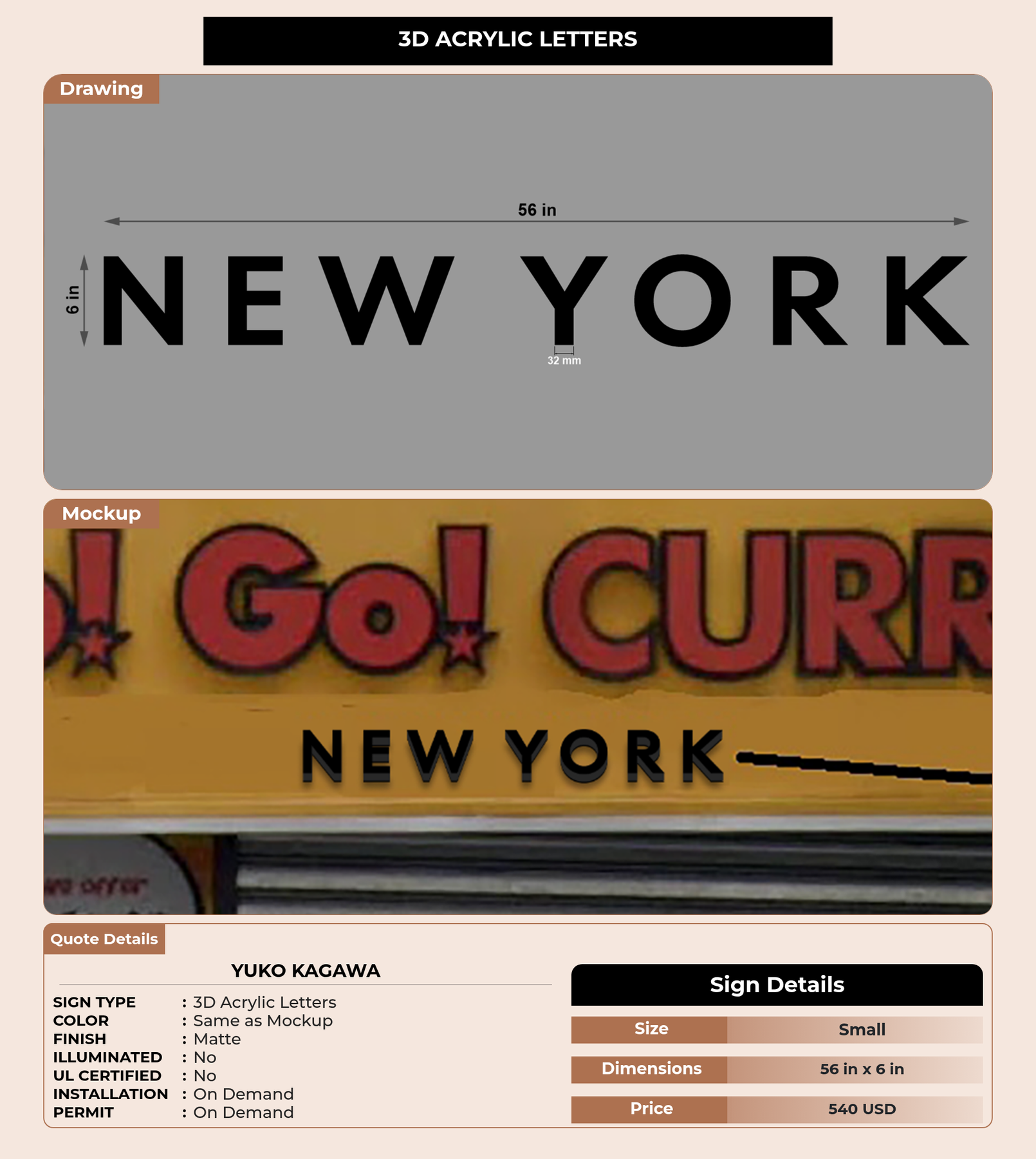Eye-catching custom 3D sign for Yuko Kagawa