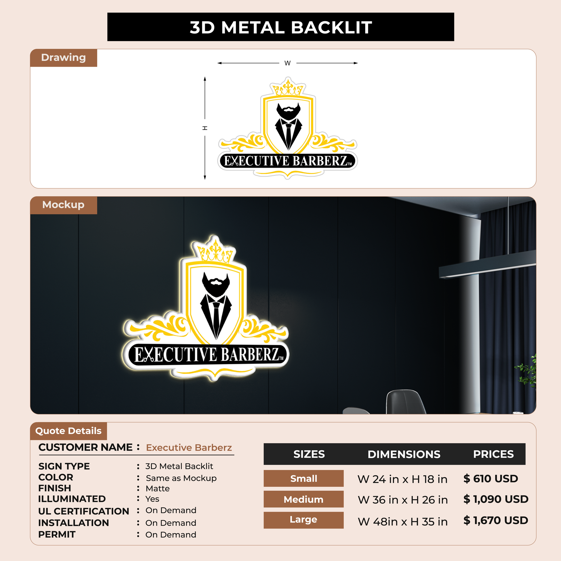 Crafted with premium material, this signage will elevate your business image, precisely mirroring your logo for a professional look.