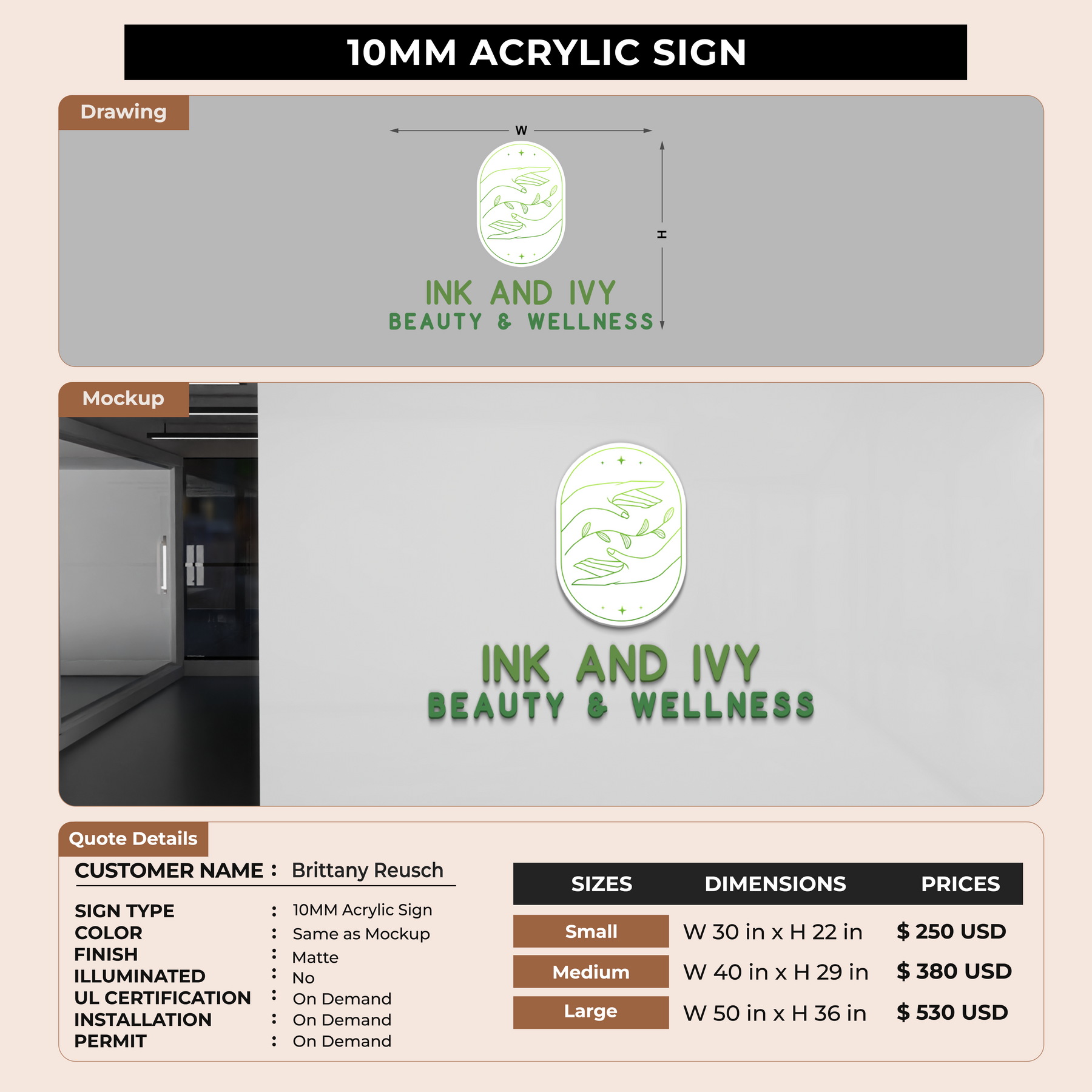 Enhance your business presence with our expertly crafted signage, made from top-quality material, to ensure longevity and durability. Fully customizable to reflect your unique brand identity, our signage offers a professional and polished appearance. Easy to install and low maintenance, it’s the perfect addition to any business setting. Trust us to deliver a product that not only meets but exceeds your expectations.