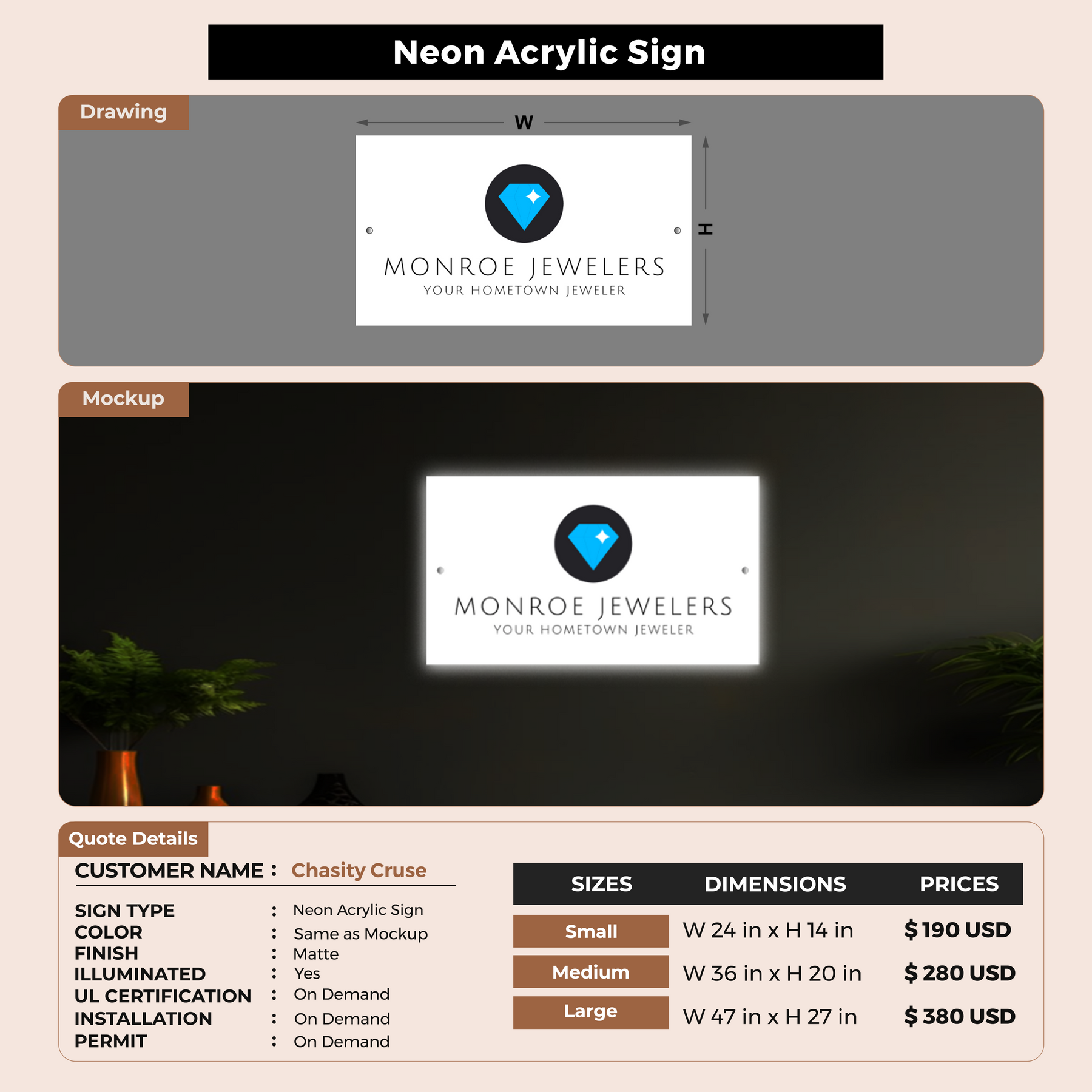 Neon Acrylic Signs for Chasity Cruse