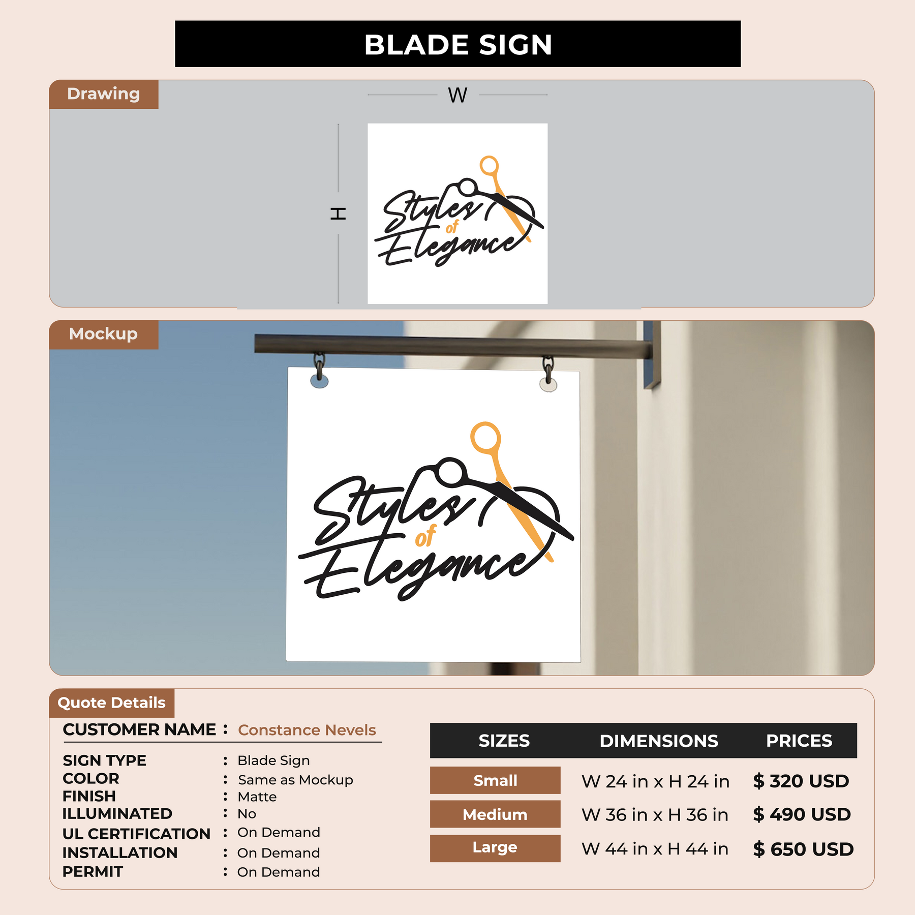 Installation services are available for an additional fee, depending on your location and the complexity of the signage.