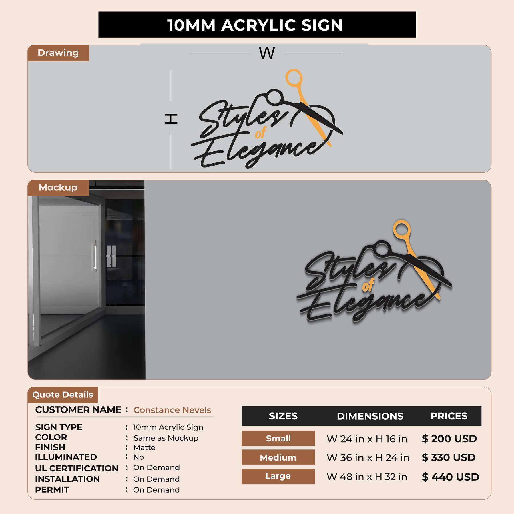 Crafted with premium material, this signage will elevate your business image, precisely mirroring your logo for a professional look.
