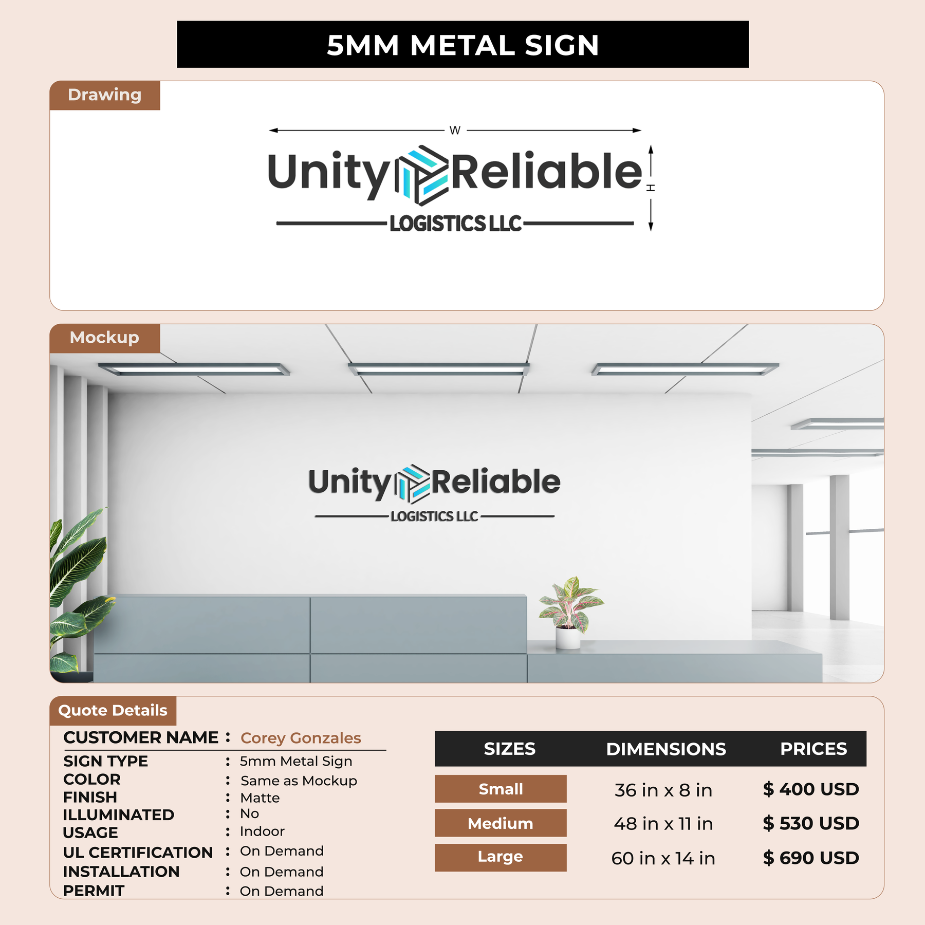 Crafted with premium material, this signage will elevate your business image, precisely mirroring your logo for a professional look.