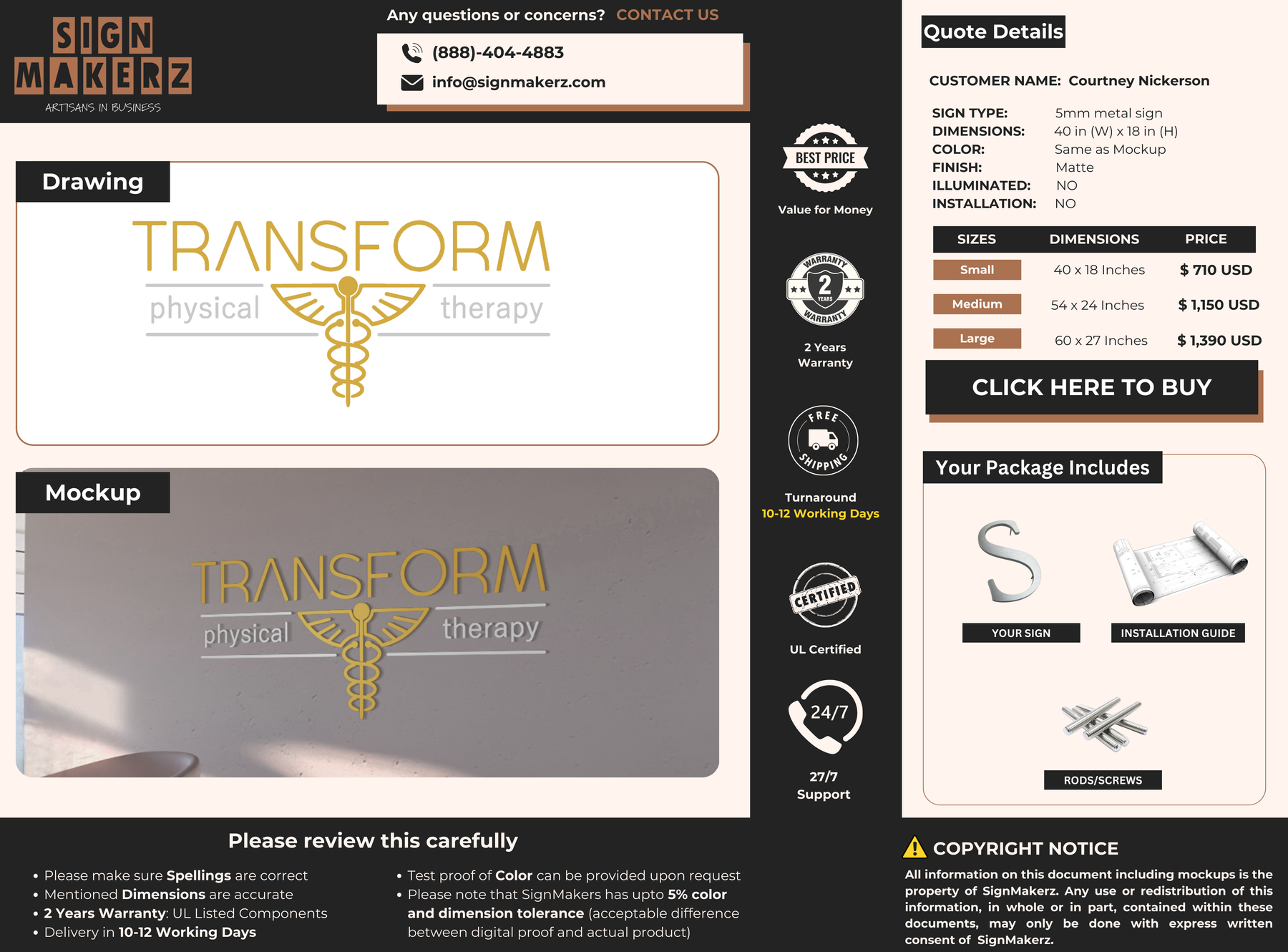Crafted with premium material, this signage will elevate your business image, precisely mirroring your logo for a professional look.