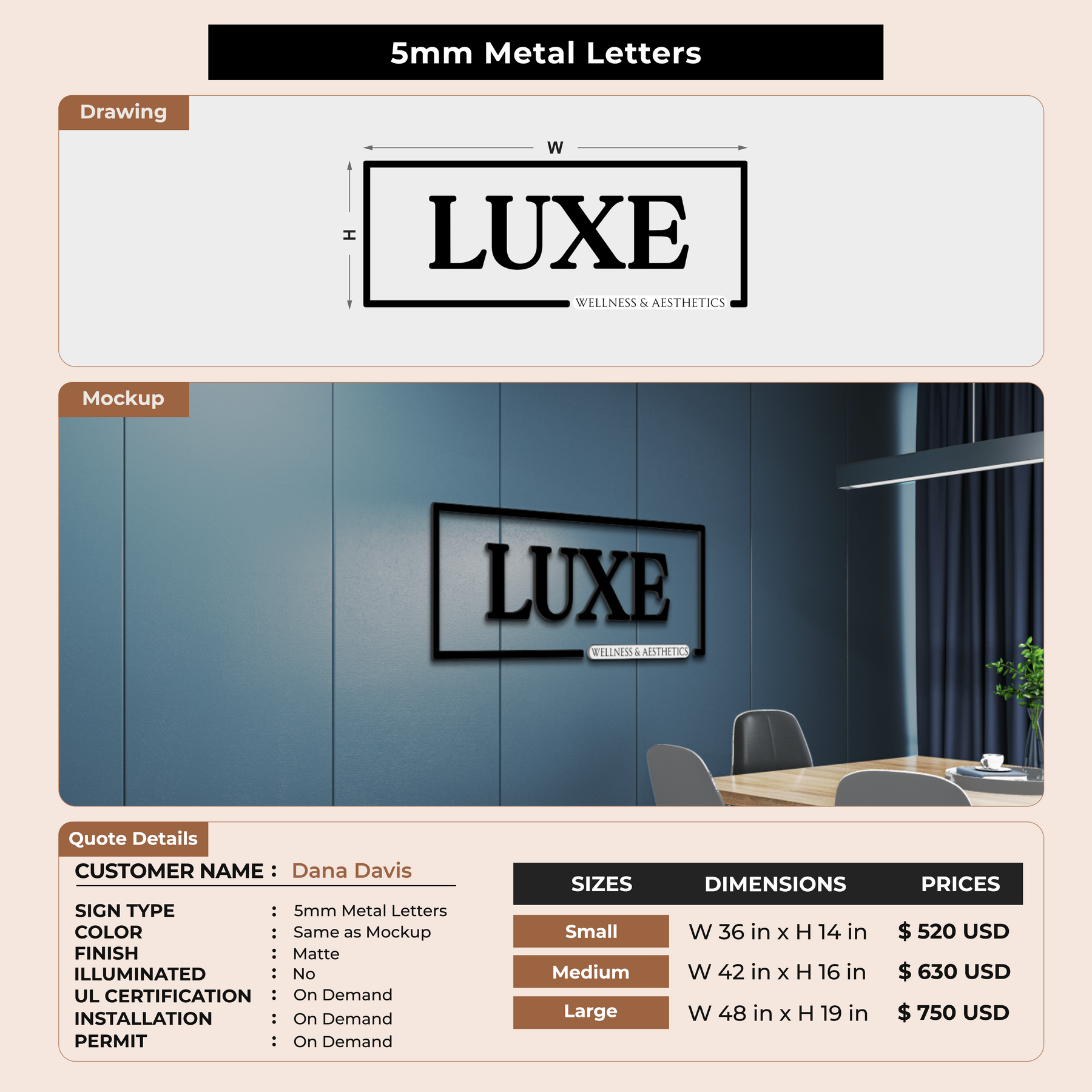 Crafted with premium material, this signage will elevate your business image, precisely mirroring your logo for a professional look.
