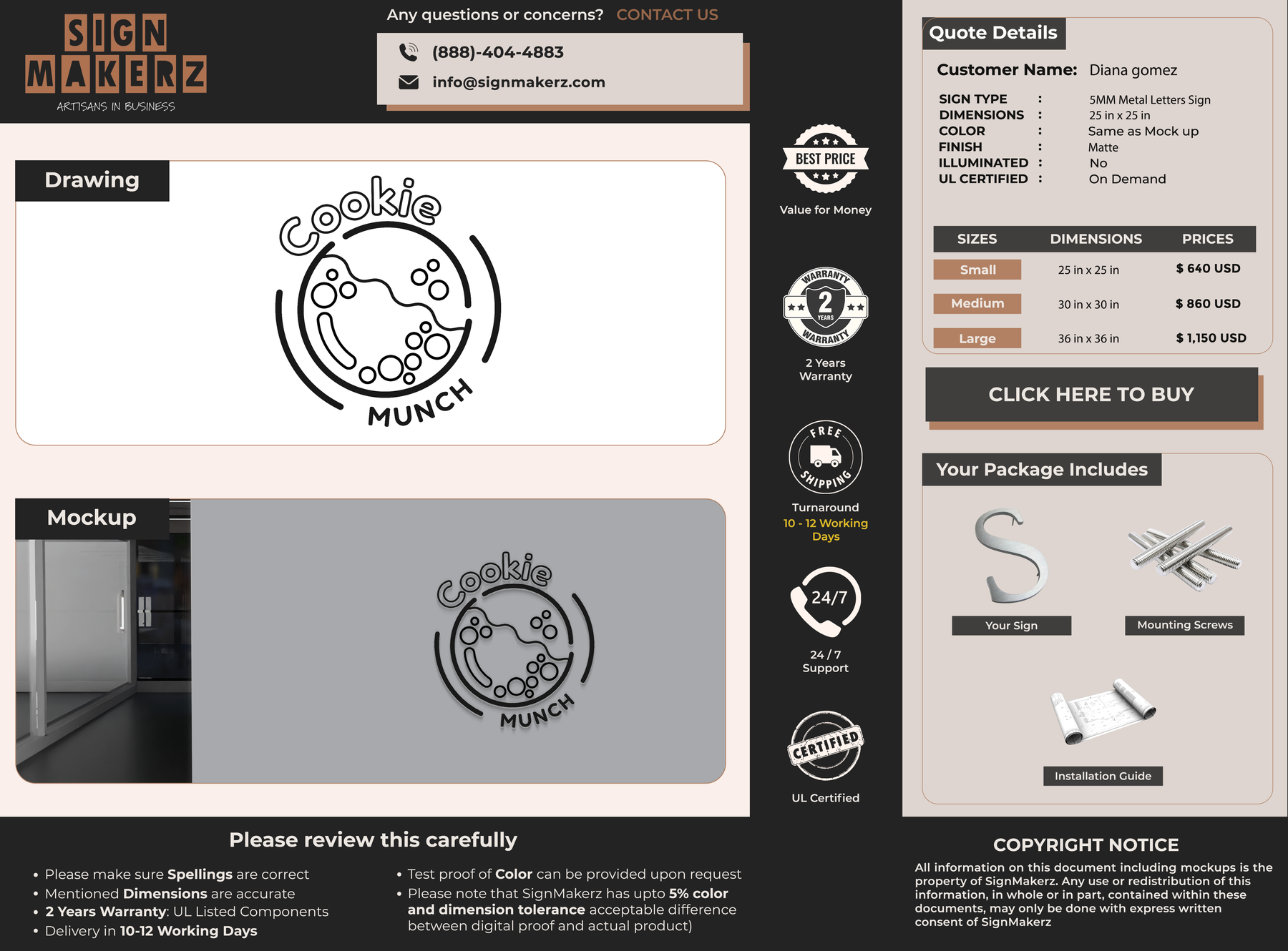 Crafted with premium material, this signage will elevate your business image, precisely mirroring your logo for a professional look.