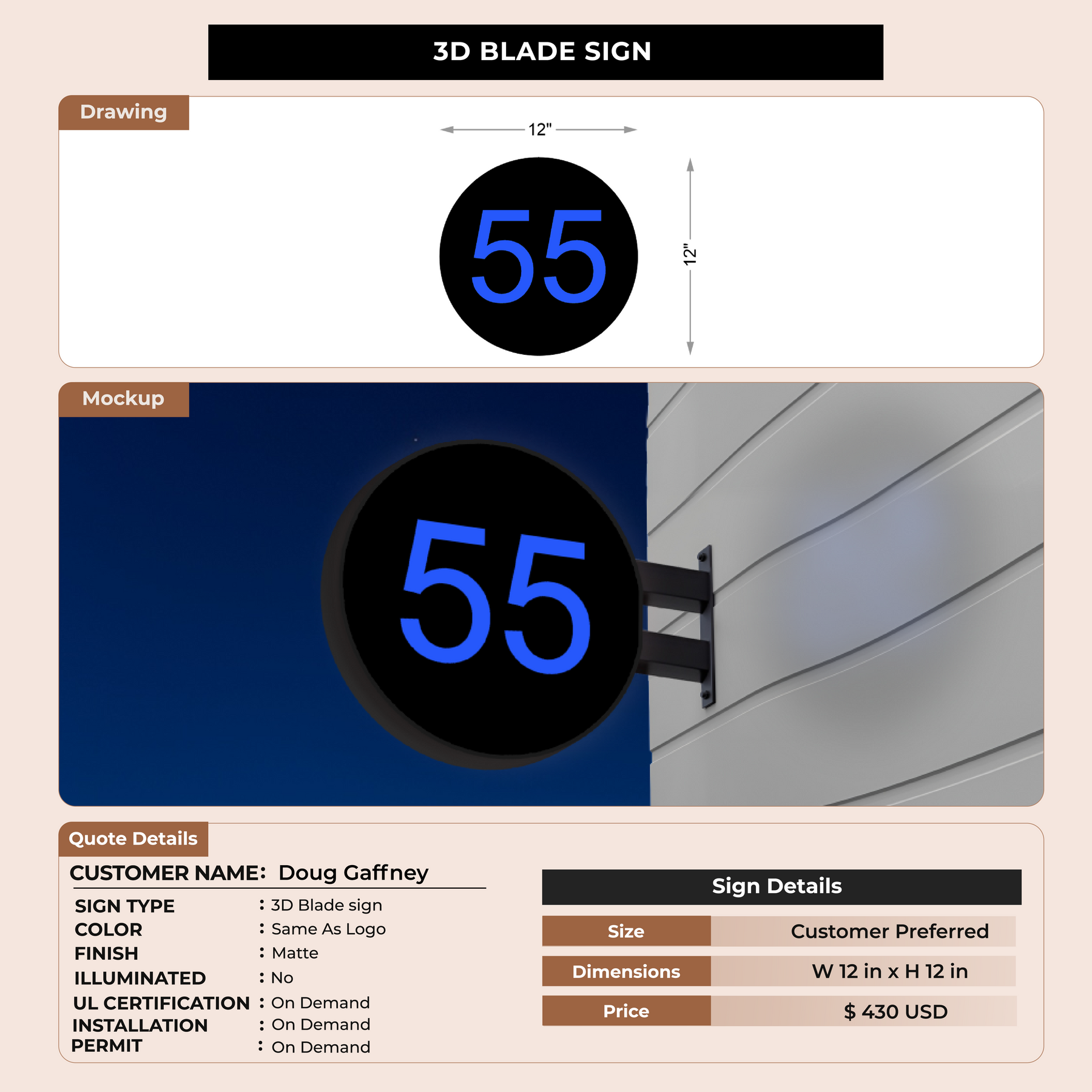 Crafted with premium material, this signage will elevate your business image, precisely mirroring your logo for a professional look.