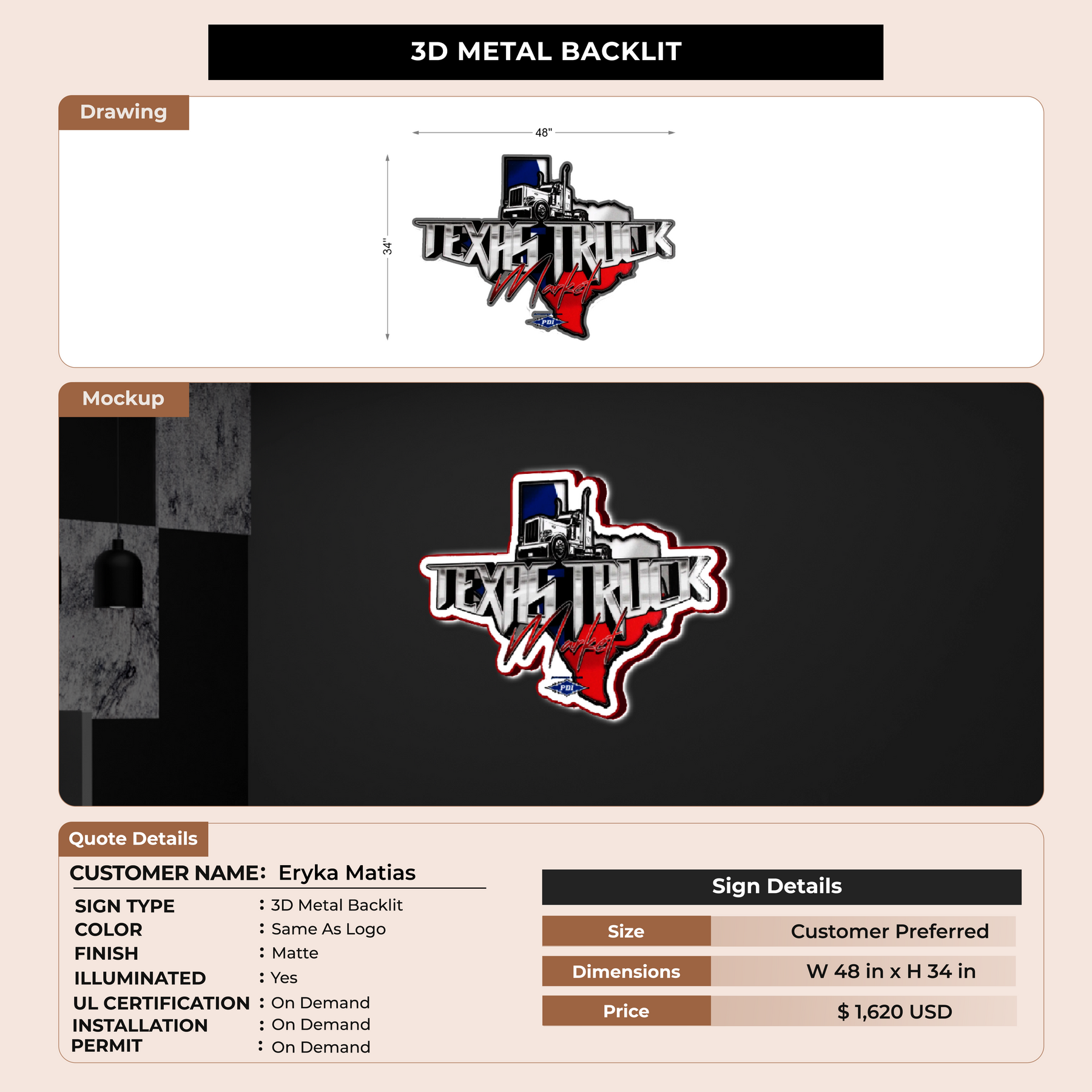 Crafted with premium material, this signage will elevate your business image, precisely mirroring your logo for a professional look.