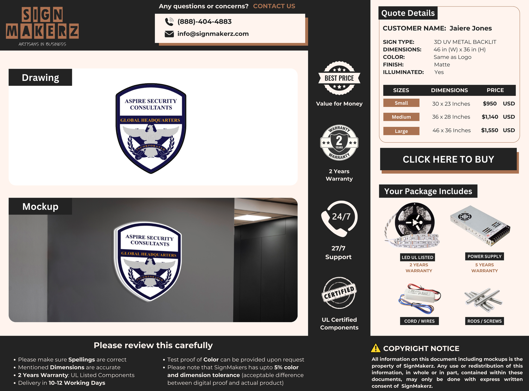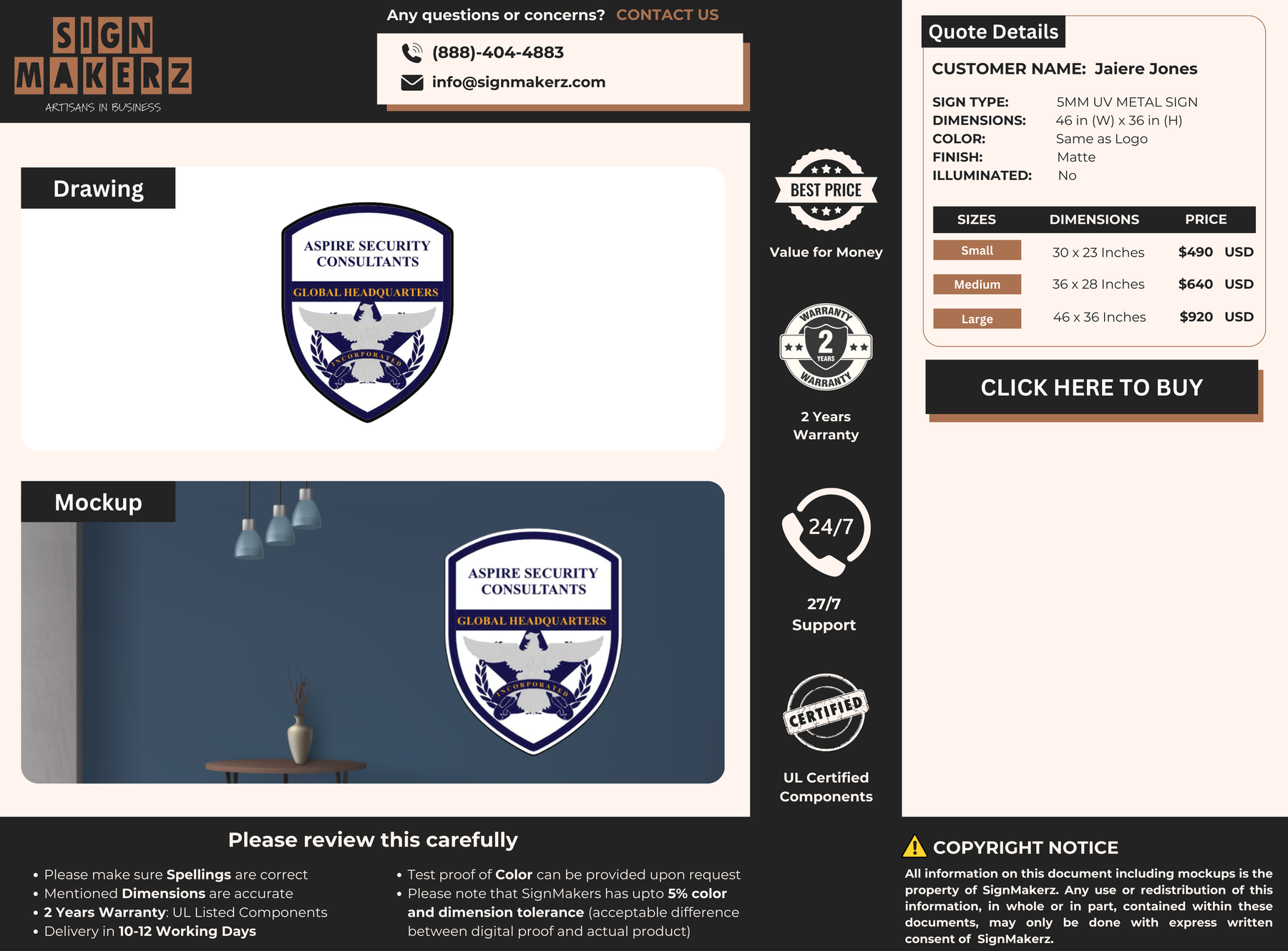 Crafted with premium material, this signage will elevate your business image, precisely mirroring your logo for a professional look.