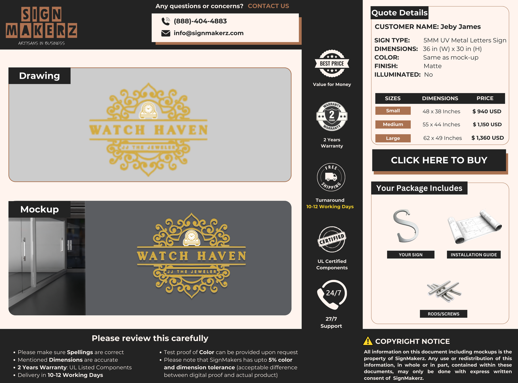 Crafted with premium material, this signage will elevate your business image, precisely mirroring your logo for a professional look.