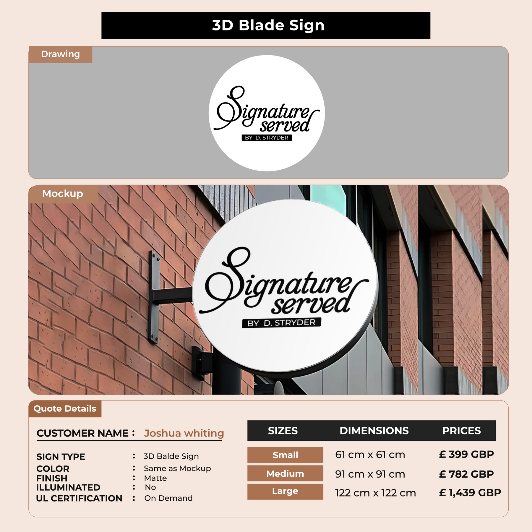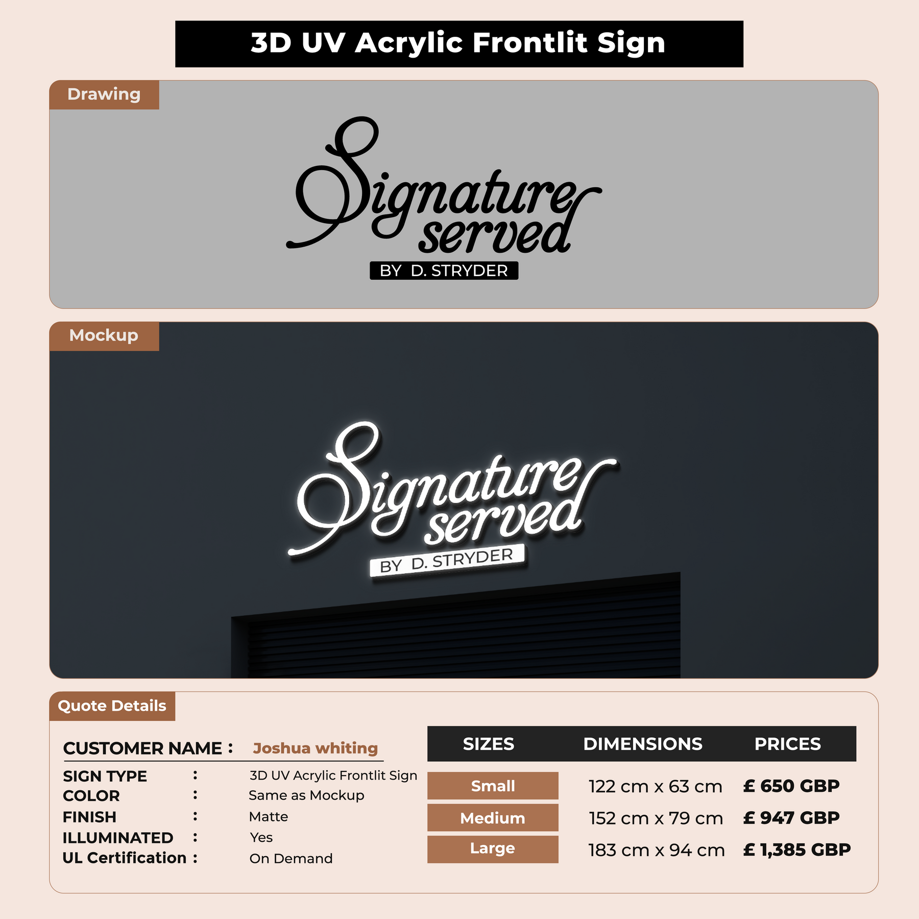 Custom Signs For Joshua whiting