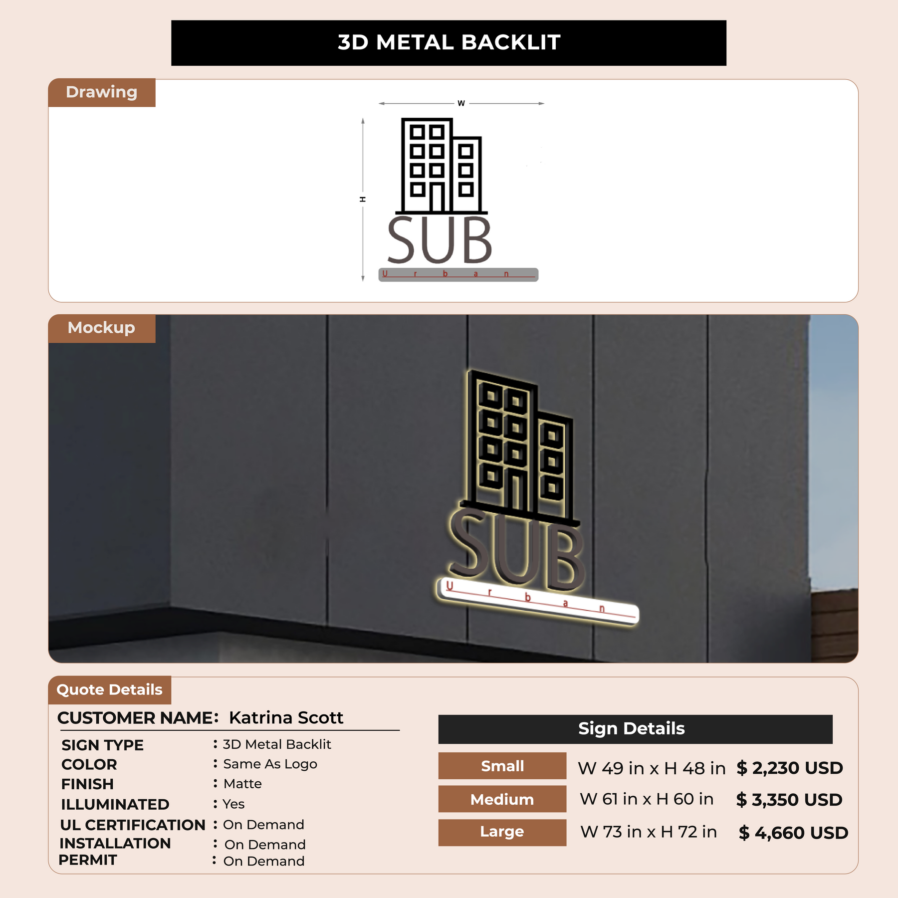 Crafted with premium material, this signage will elevate your business image, precisely mirroring your logo for a professional look.