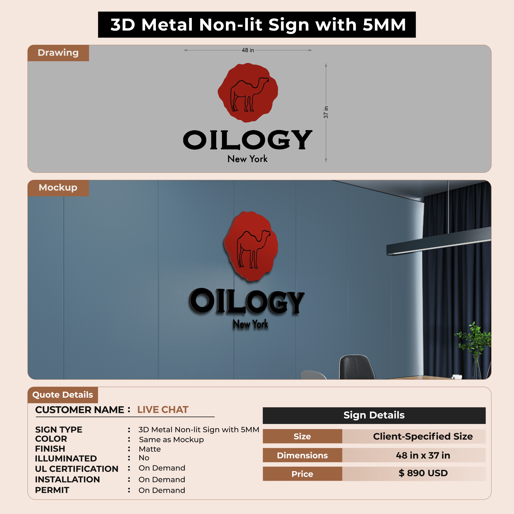 Installation services are available for an additional fee, depending on your location and the complexity of the signage.