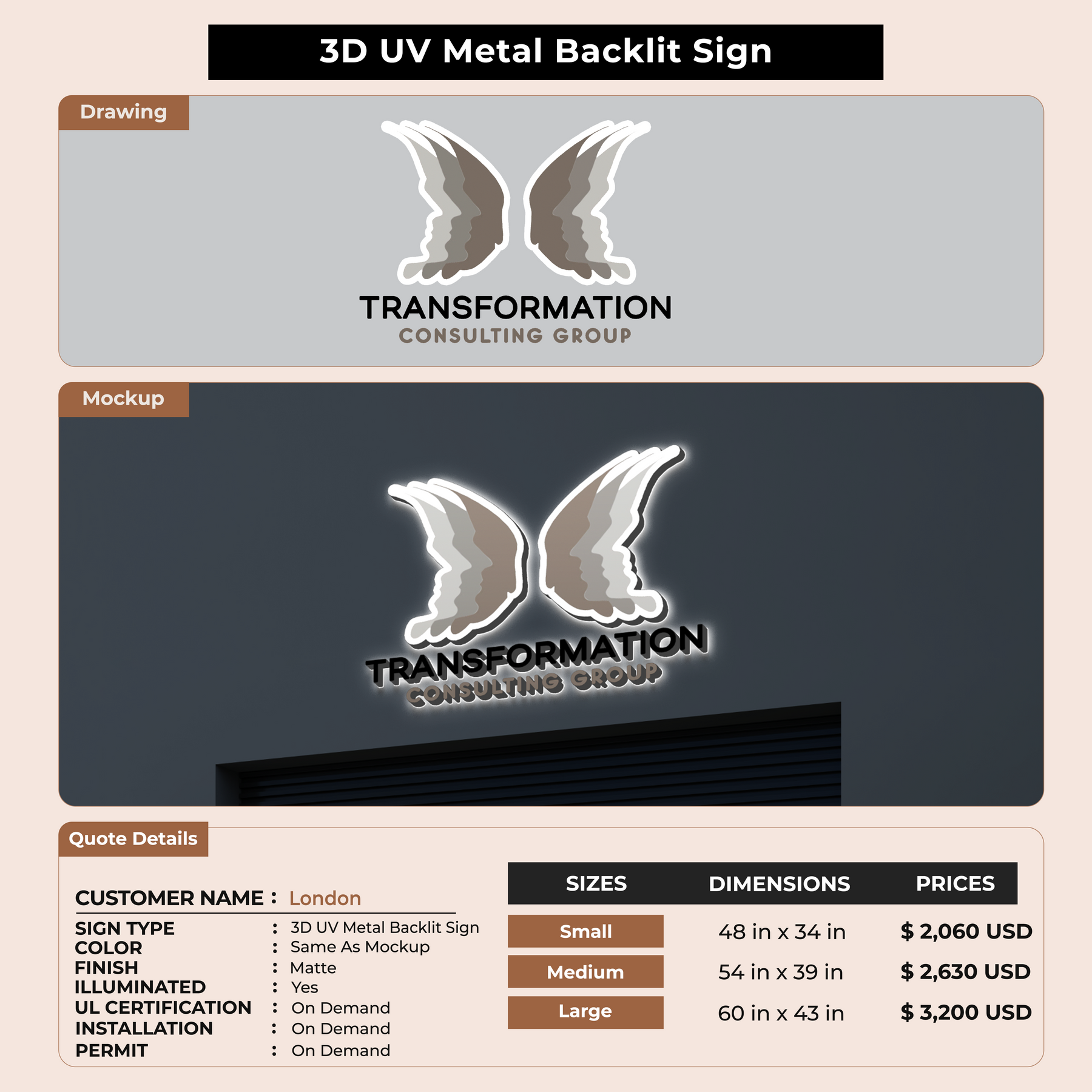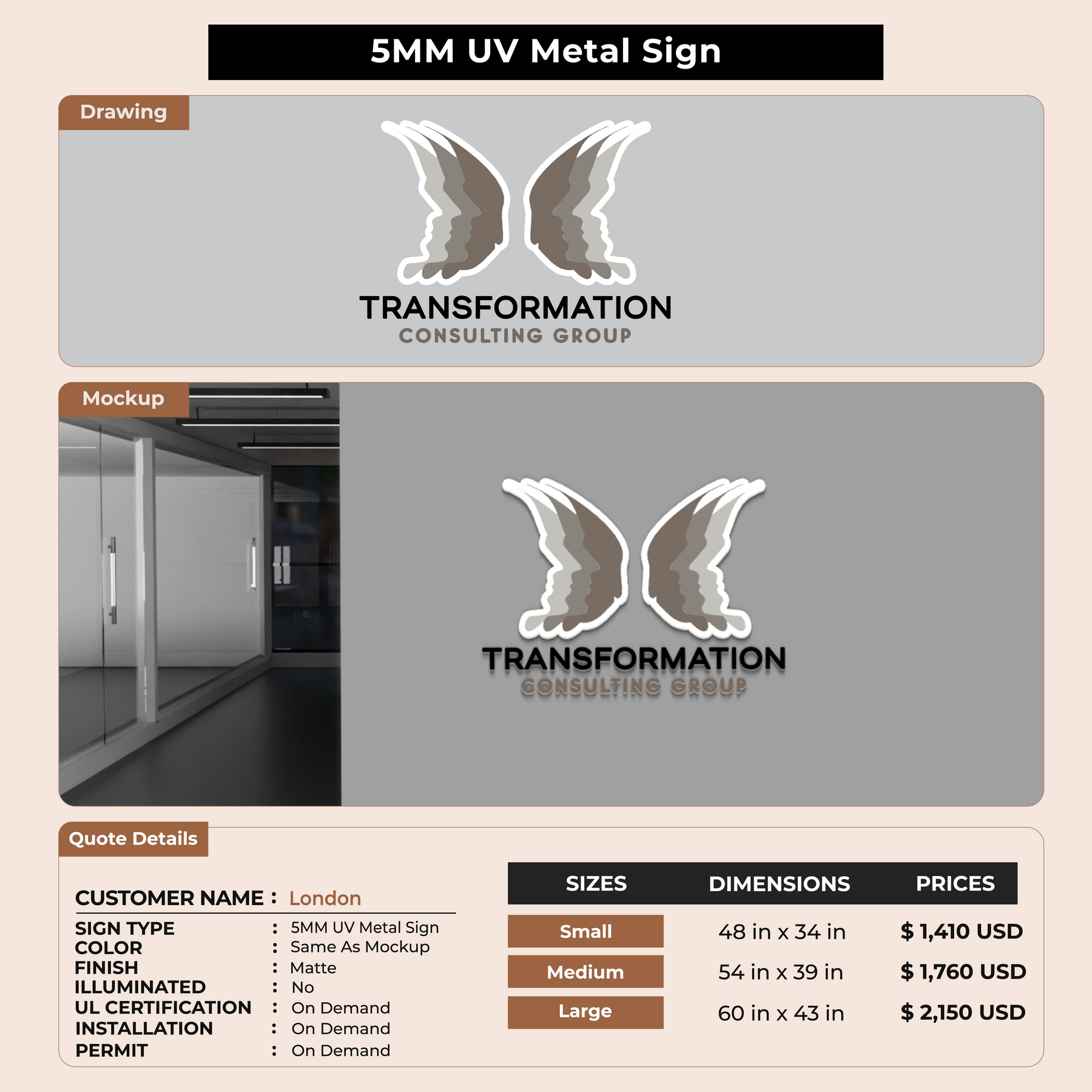 Enhance your business presence with our expertly crafted signage, made from top-quality material, to ensure longevity and durability. Fully customizable to reflect your unique brand identity, our signage offers a professional and polished appearance. Easy to install and low maintenance, it’s the perfect addition to any business setting. Trust us to deliver a product that not only meets but exceeds your expectations.