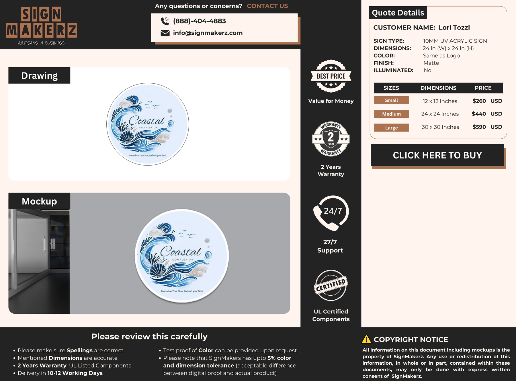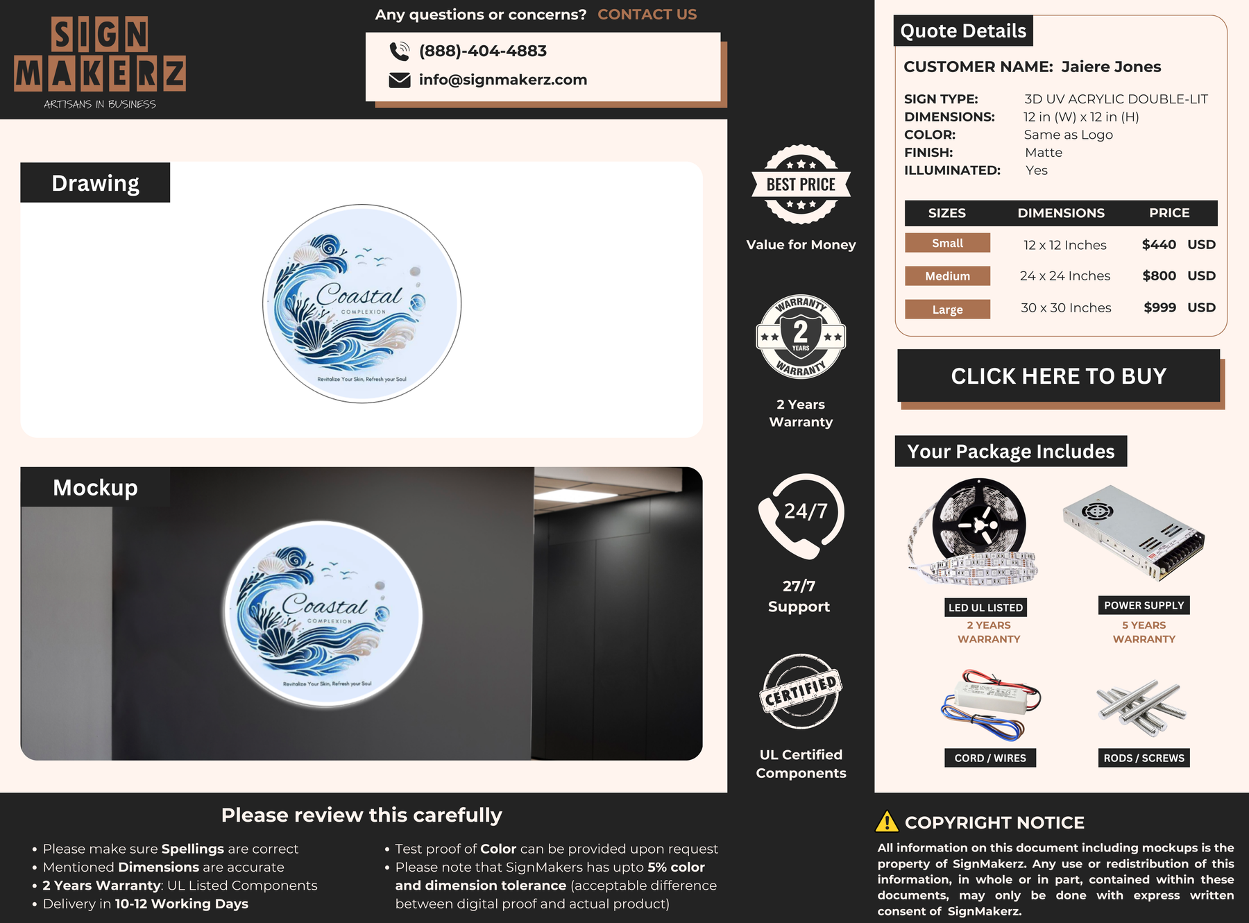 Crafted with premium material, this signage will elevate your business image, precisely mirroring your logo for a professional look.