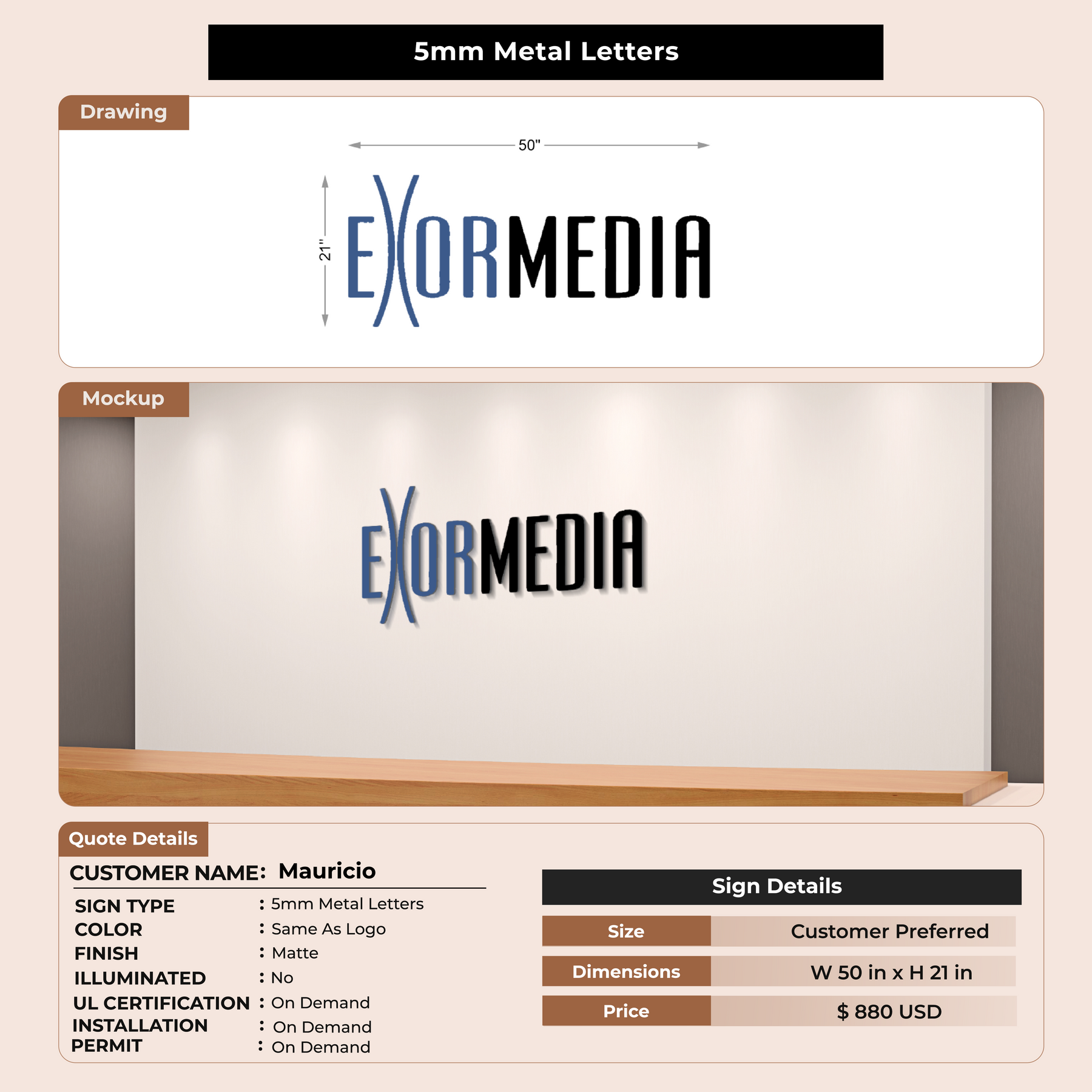 Crafted with premium material, this signage will elevate your business image, precisely mirroring your logo for a professional look.