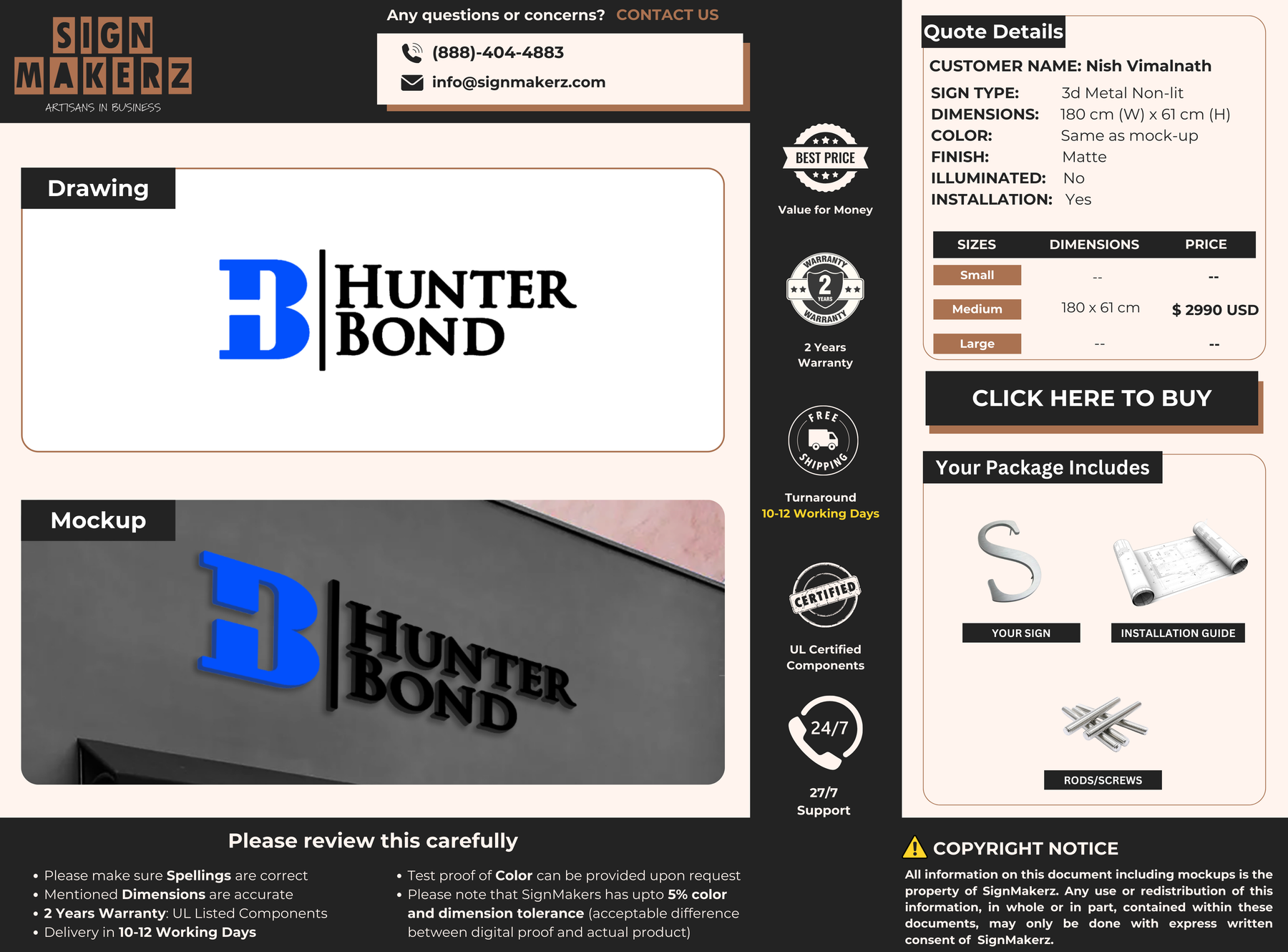 Crafted with premium material, this signage will elevate your business image, precisely mirroring your logo for a professional look.
