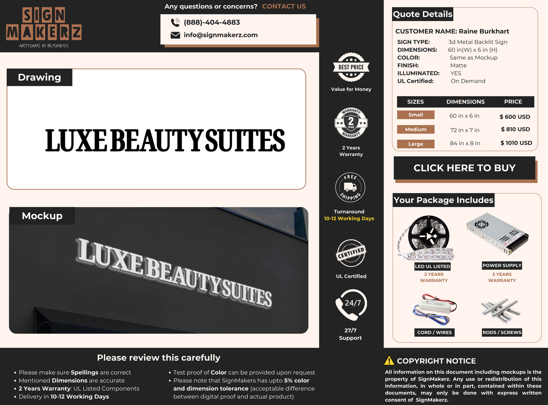 Enhance your business presence with our expertly crafted signage, made from top-quality material, to ensure longevity and durability. Fully customizable to reflect your unique brand identity, our signage offers a professional and polished appearance. Easy to install and low maintenance, it’s the perfect addition to any business setting. Trust us to deliver a product that not only meets but exceeds your expectations.