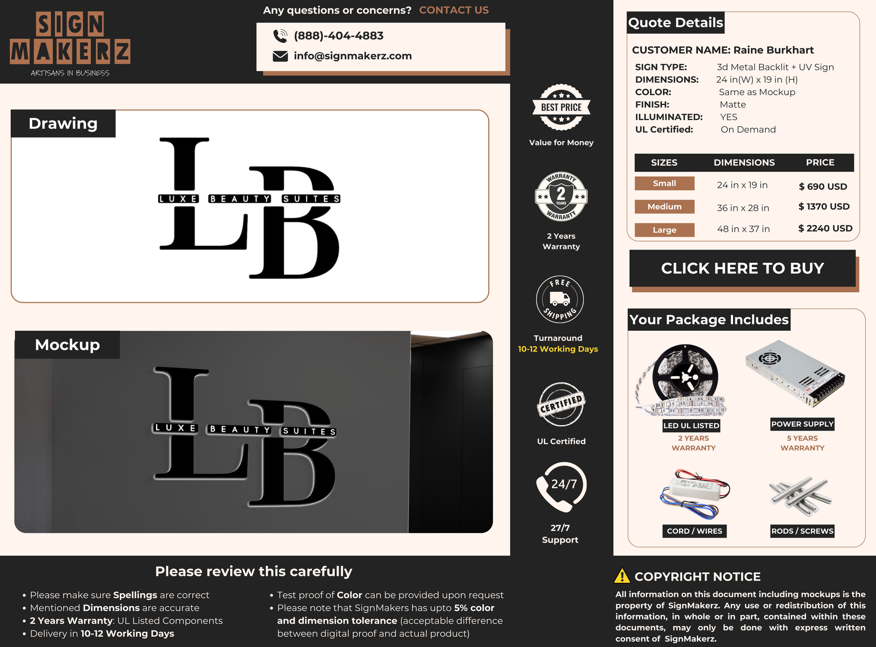 Crafted with premium material, this signage will elevate your business image, precisely mirroring your logo for a professional look.