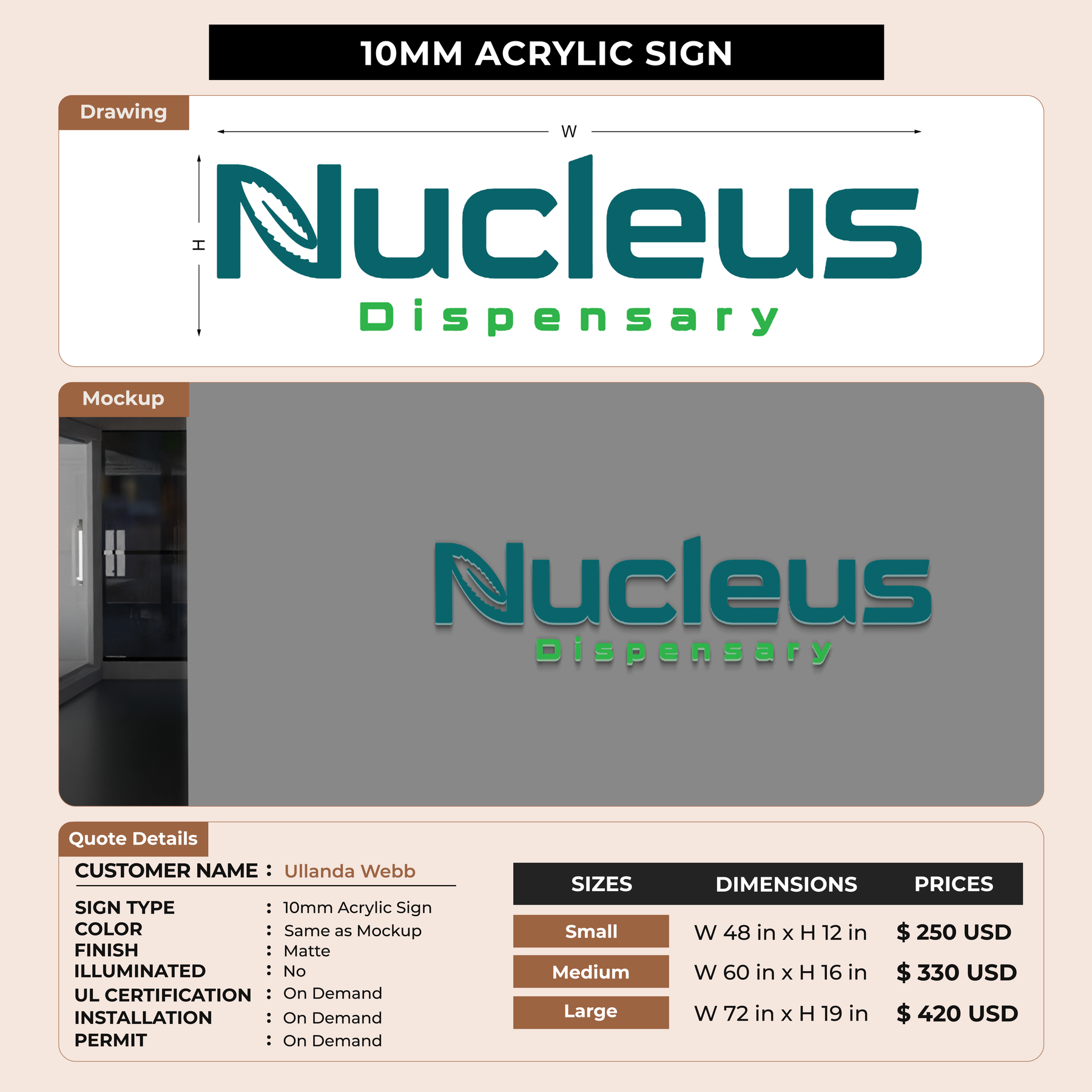 Custom Signs for Ullanda Webb