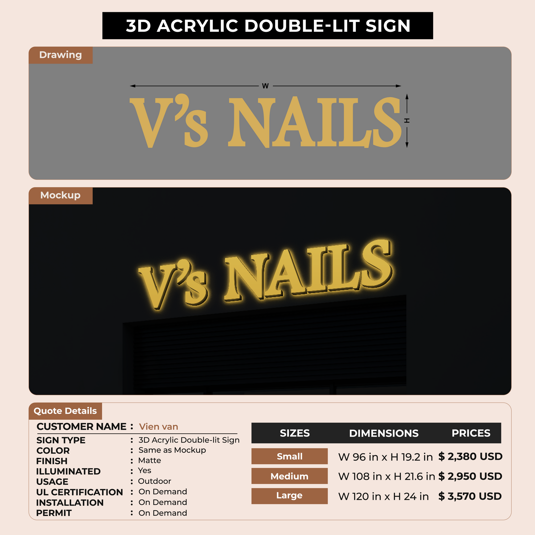 Custom Signs for Vien van