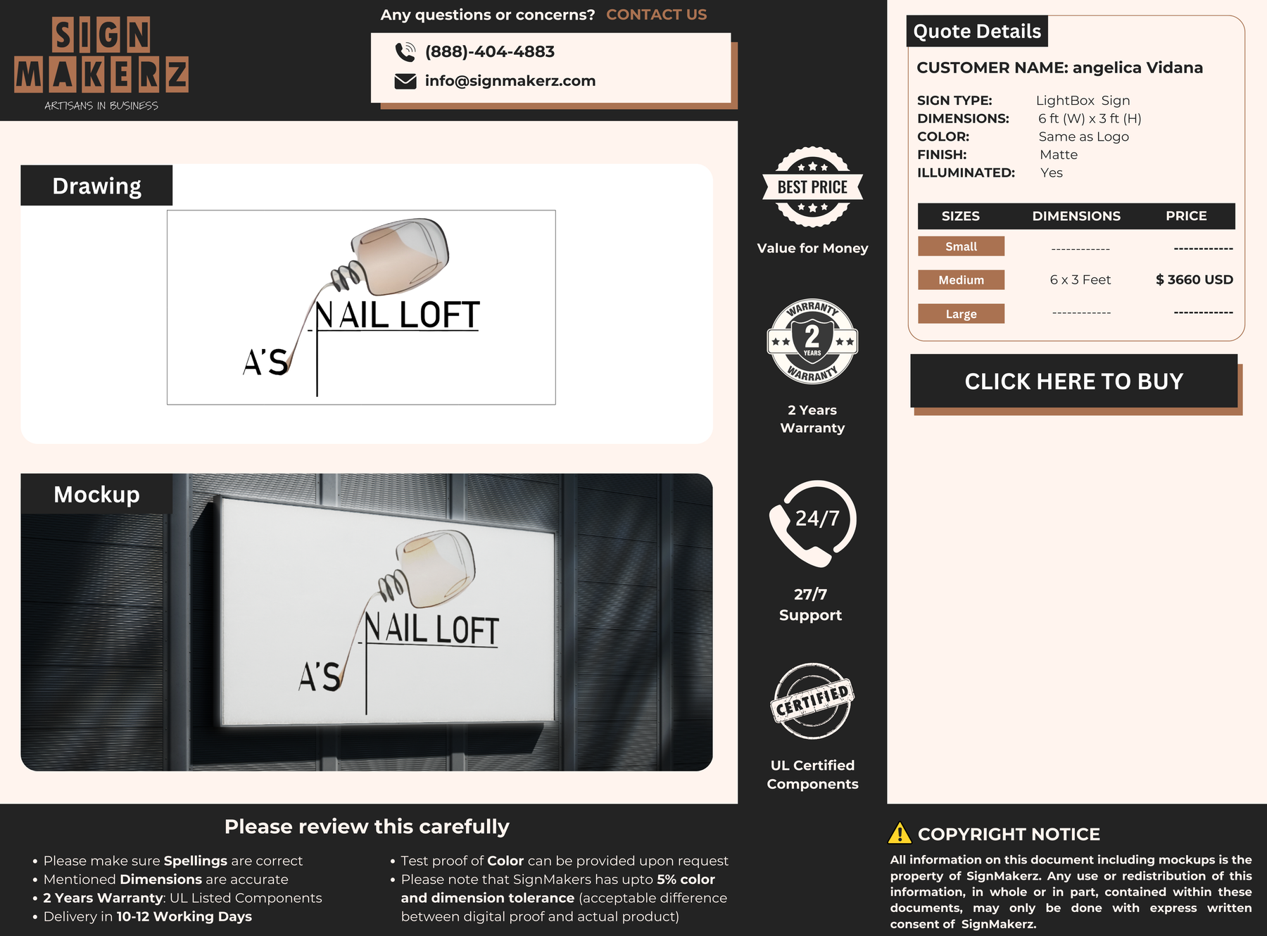Enhance your business presence with our expertly crafted signage, made from top-quality material, to ensure longevity and durability. Fully customizable to reflect your unique brand identity, our signage offers a professional and polished appearance. Easy to install and low maintenance, it’s the perfect addition to any business setting. Trust us to deliver a product that not only meets but exceeds your expectations.