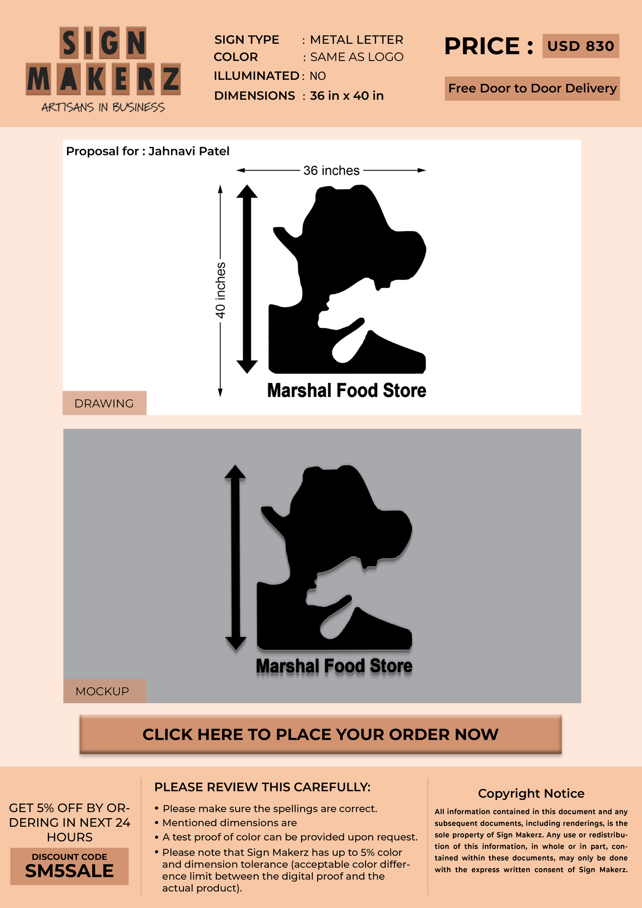 Crafted with premium material, this signage will elevate your business image, precisely mirroring your logo for a professional look.