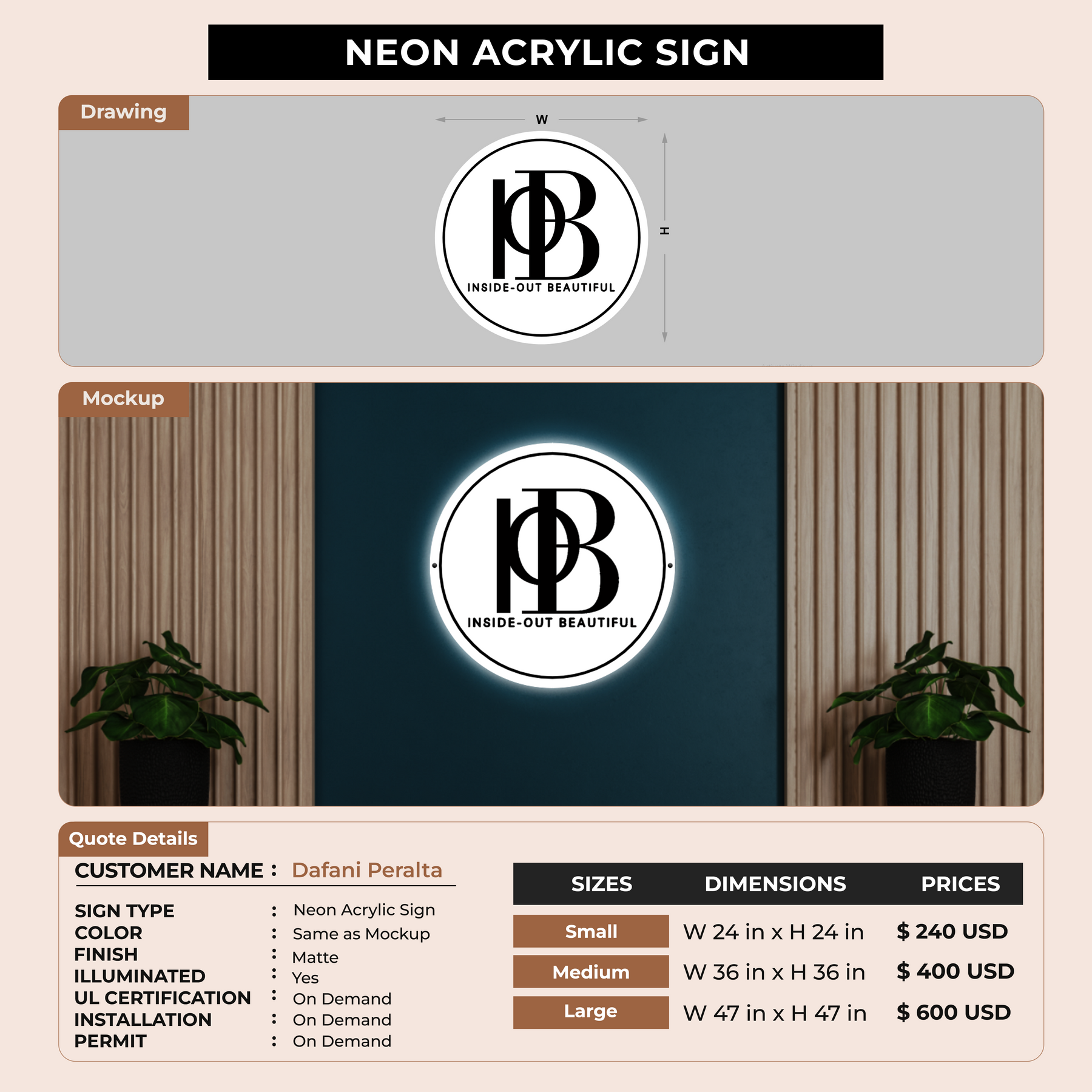 Neon Acrylic Sign for Dafani Peralta