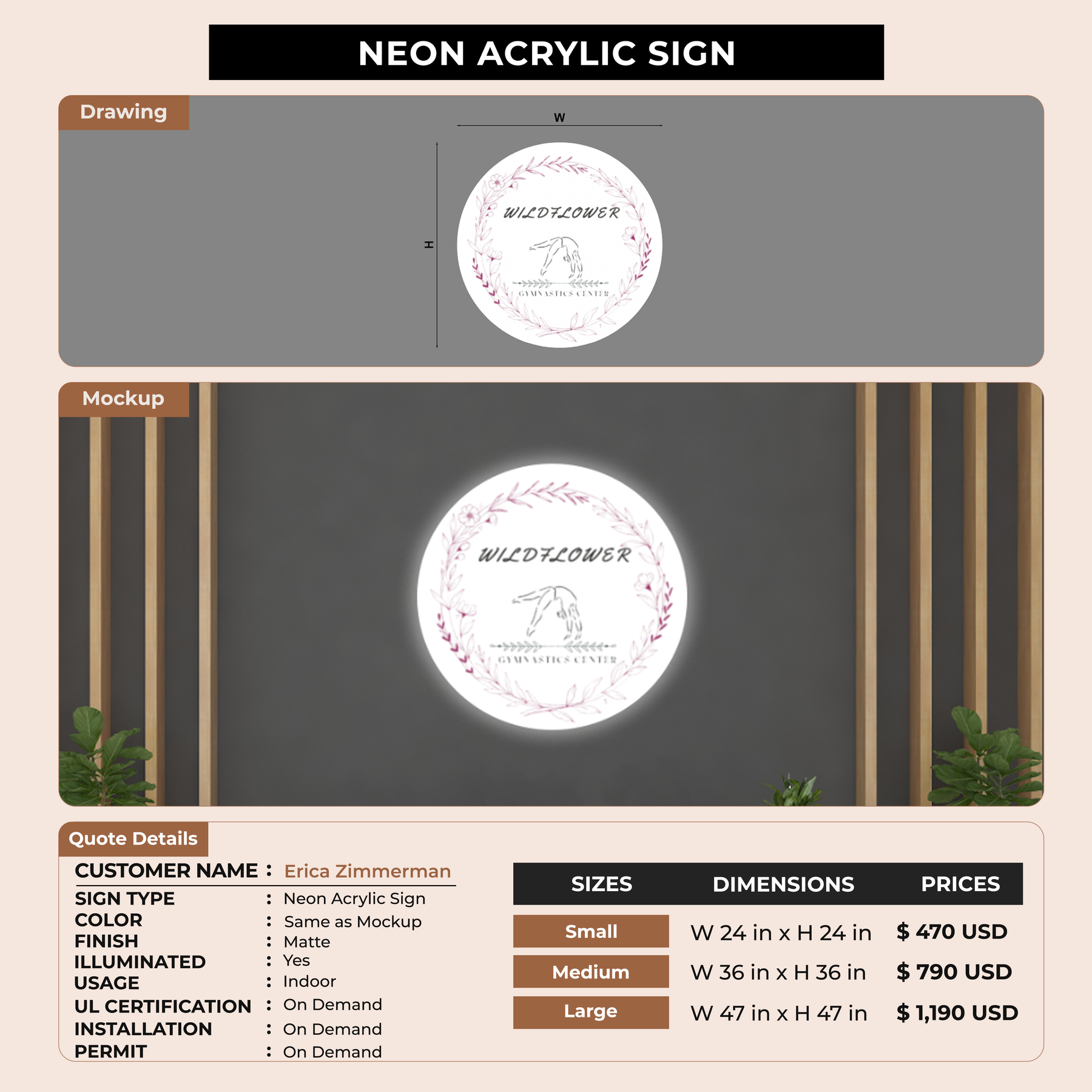 Neon Acrylic Sign for Erica Zimmerman
