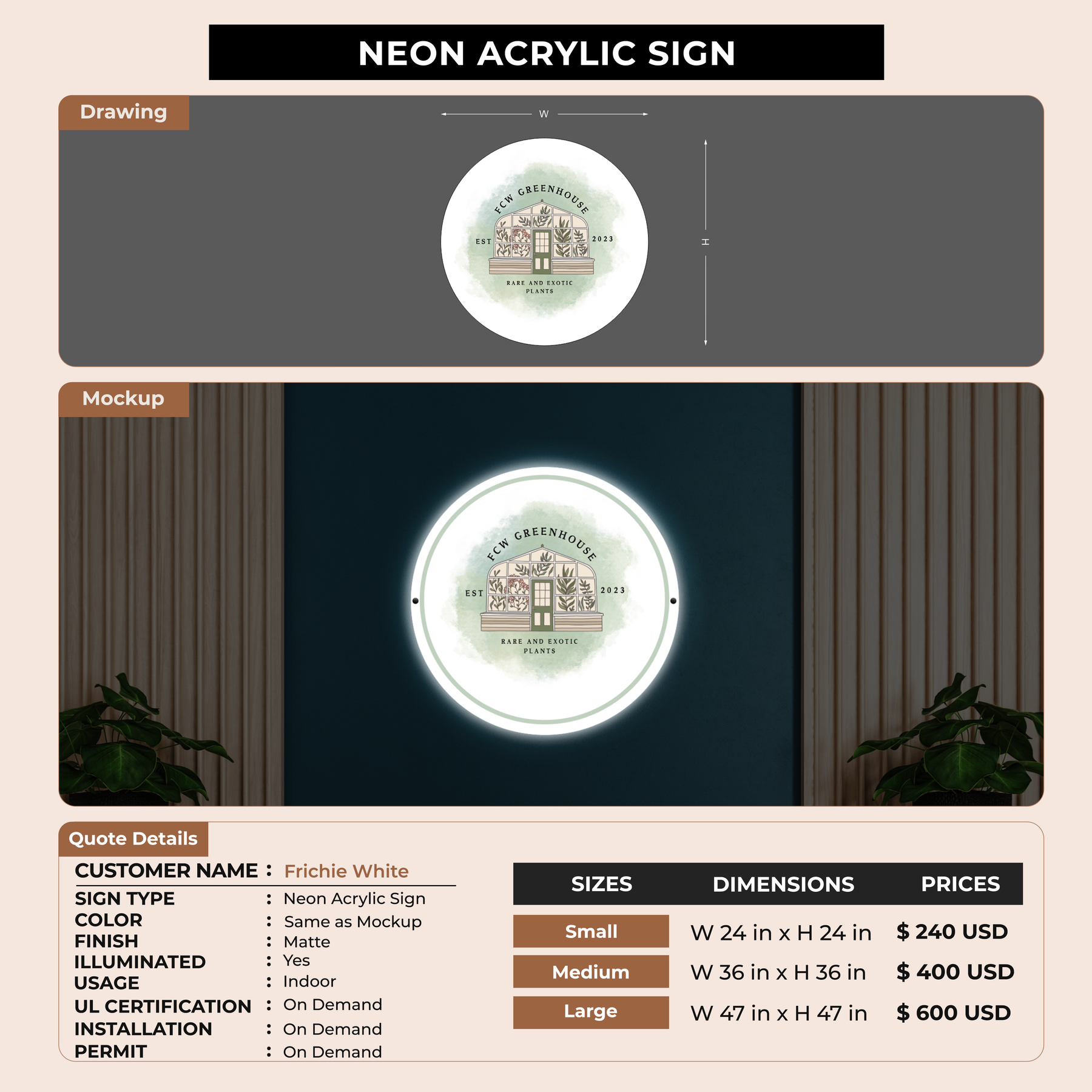 Crafted with premium material, this signage will elevate your business image, precisely mirroring your logo for a professional look.
