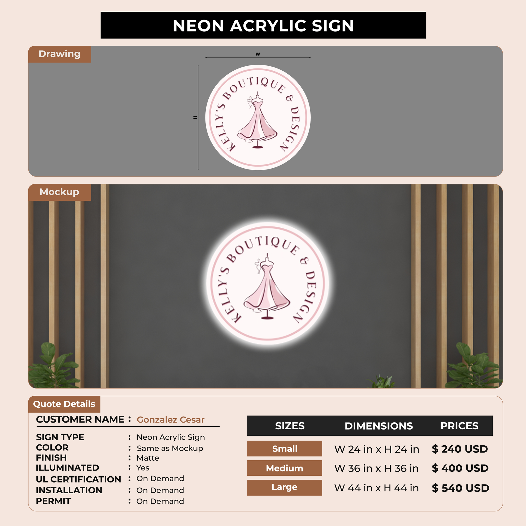 Neon Acrylic Sign for Gonzalez Cesar