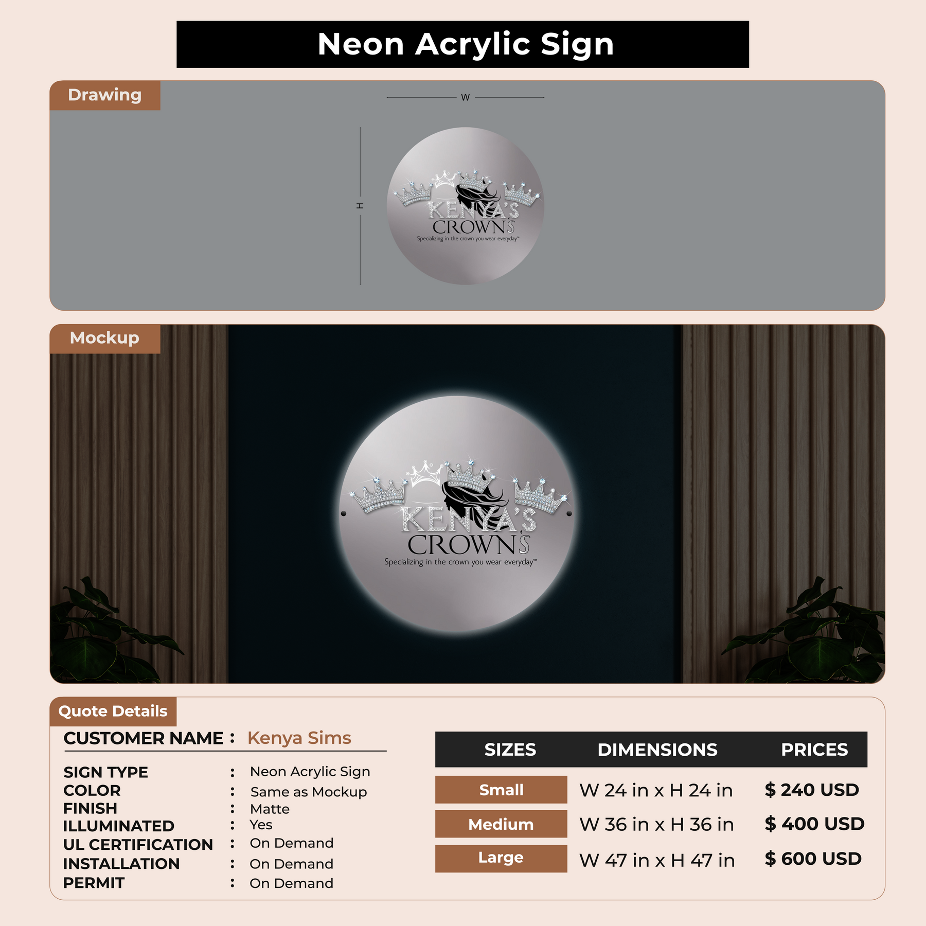Neon Acrylic Sign for Kenya Sims