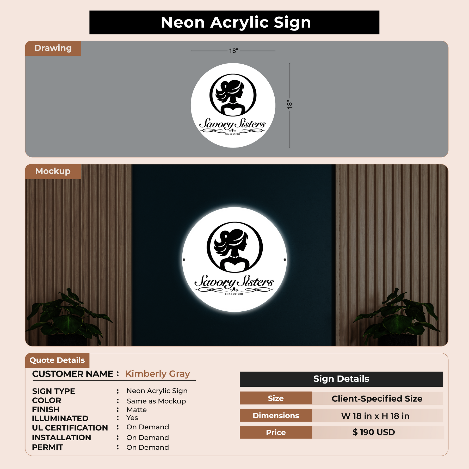 Neon Acrylic Sign for Kimberly Gray