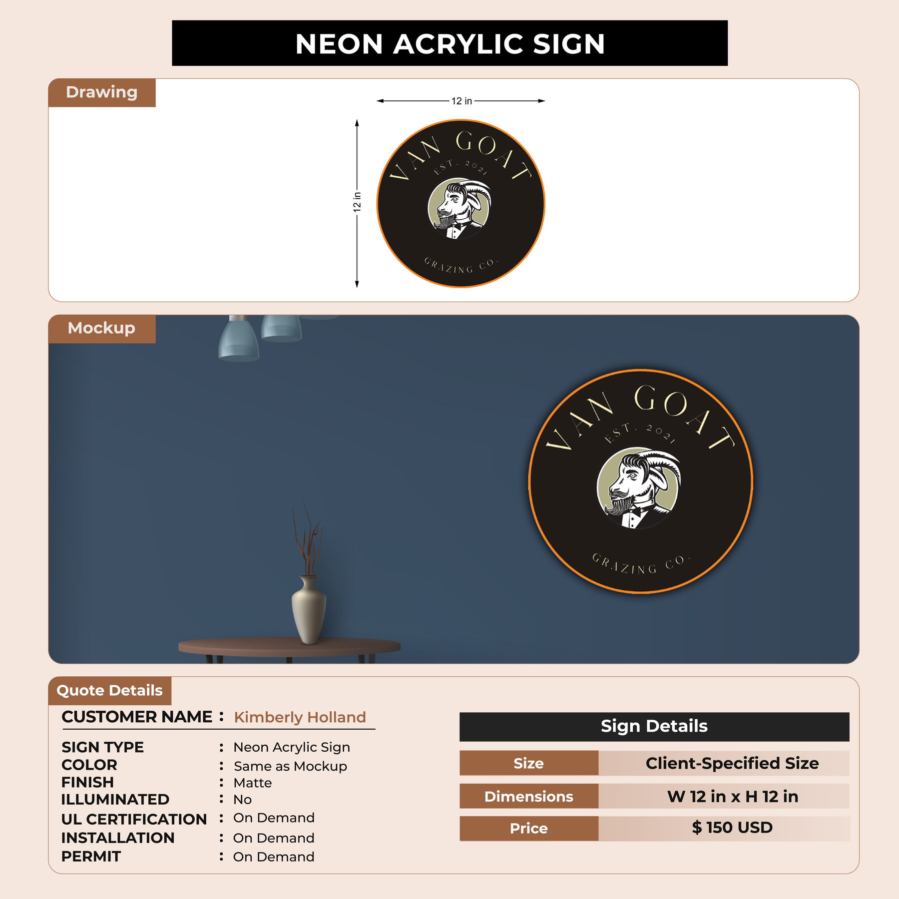 Neon Acrylic Sign For Kimberly Holland