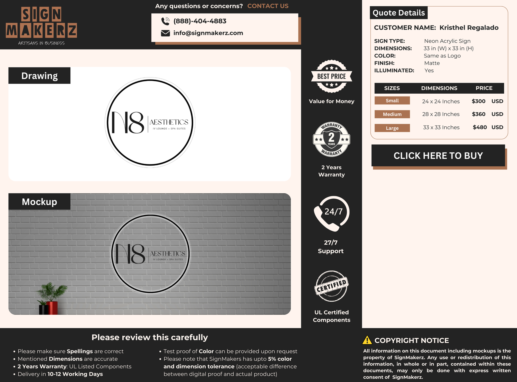 Crafted with premium material, this signage will elevate your business image, precisely mirroring your logo for a professional look.
