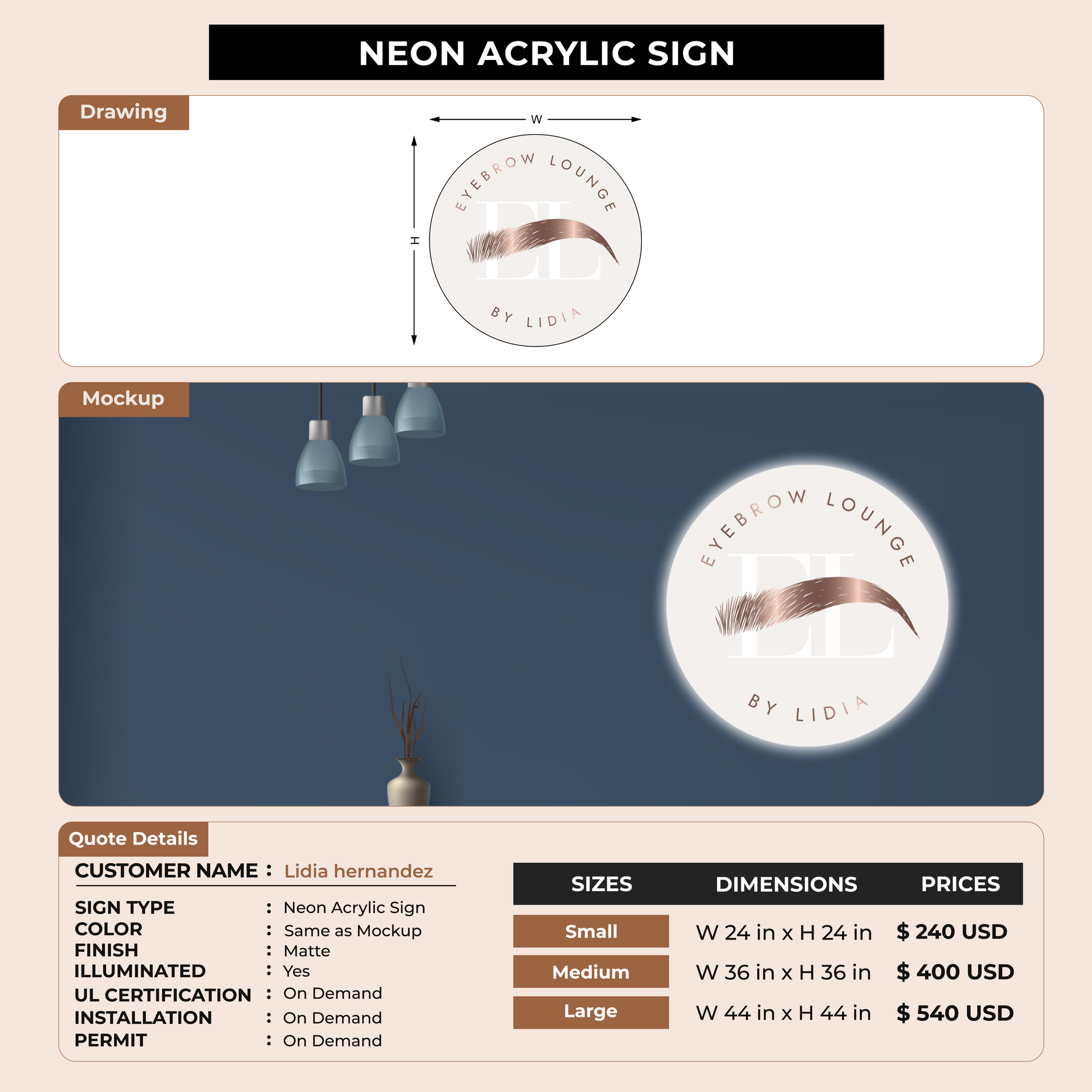 Neon Acrylic Sign for Lidia hernandez