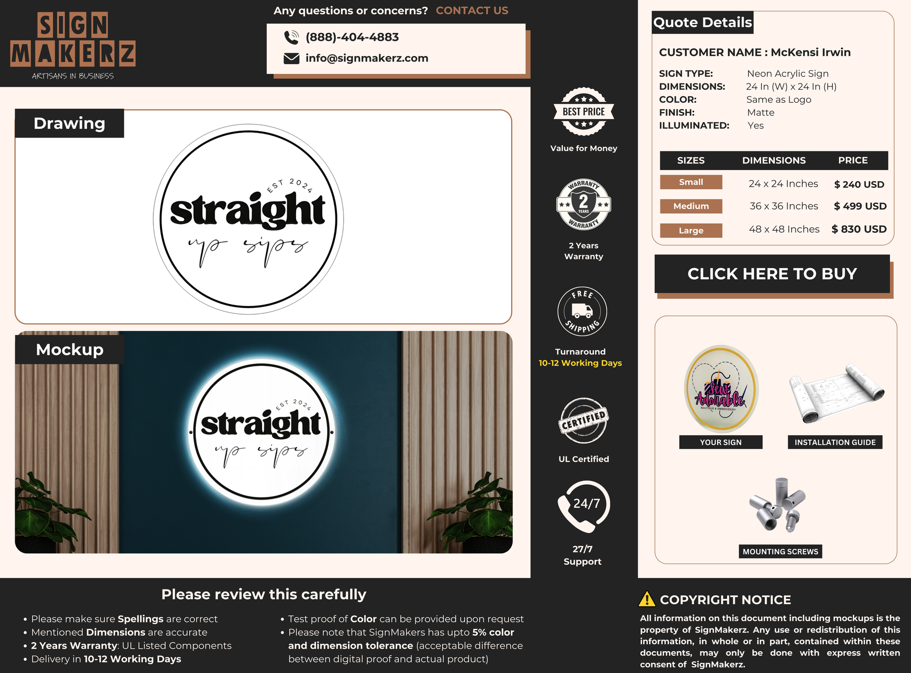 Crafted with premium material, this signage will elevate your business image, precisely mirroring your logo for a professional look.