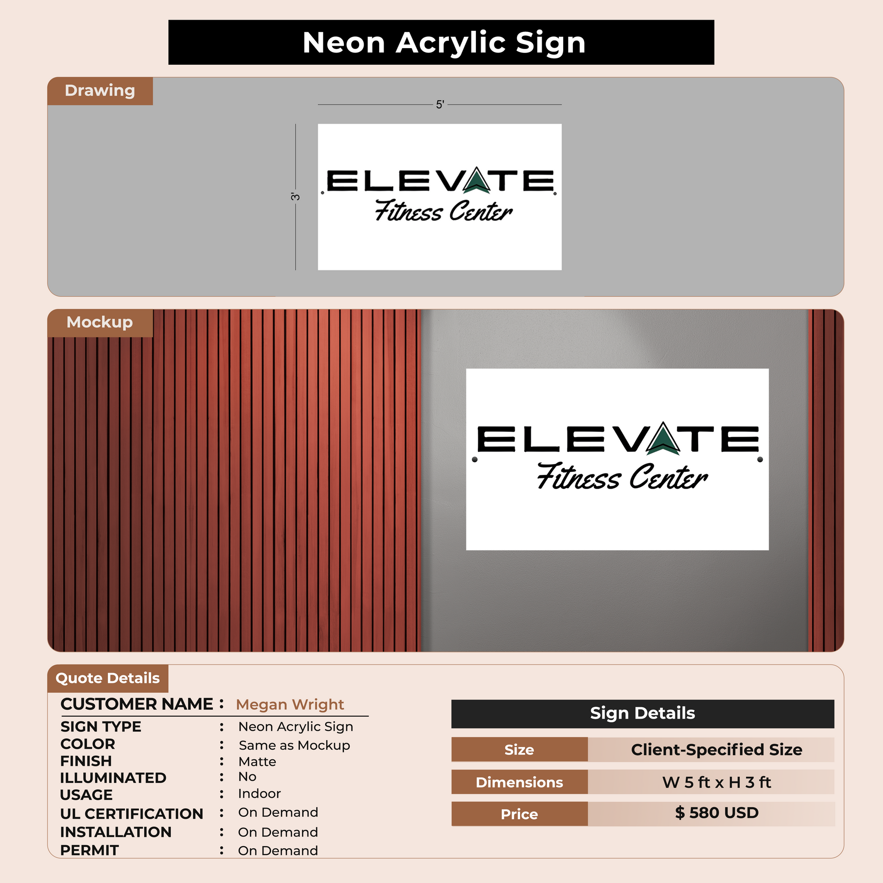 Neon Acrylic Sign for Megan Wright