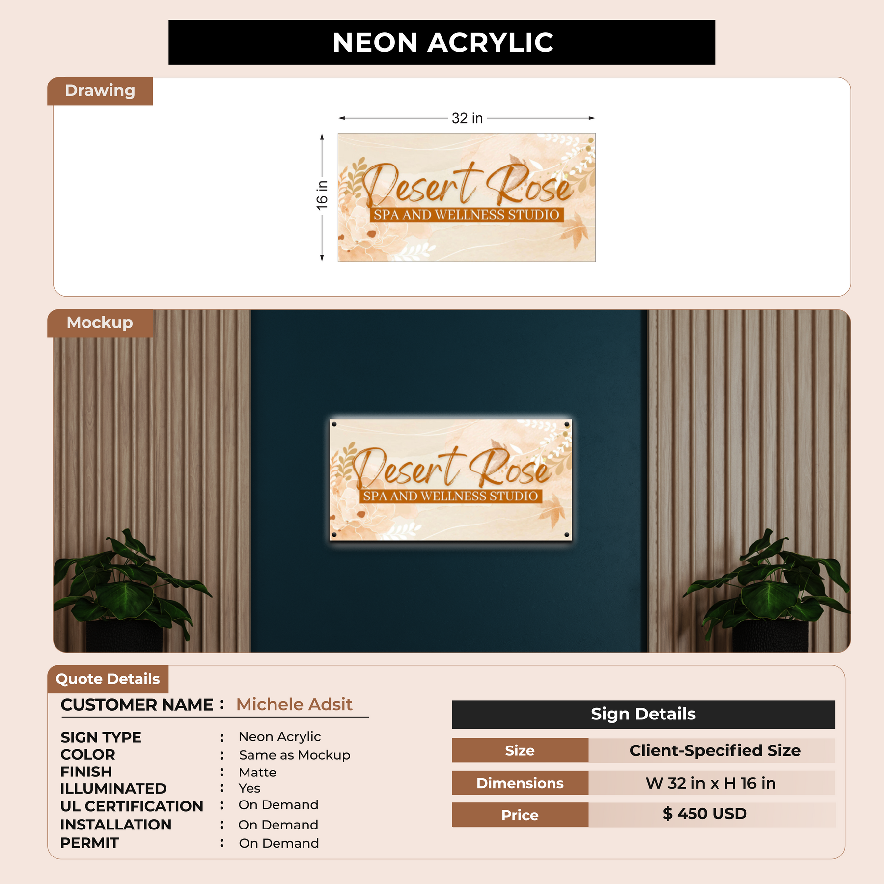 Neon Acrylic Sign for Michele Adsit