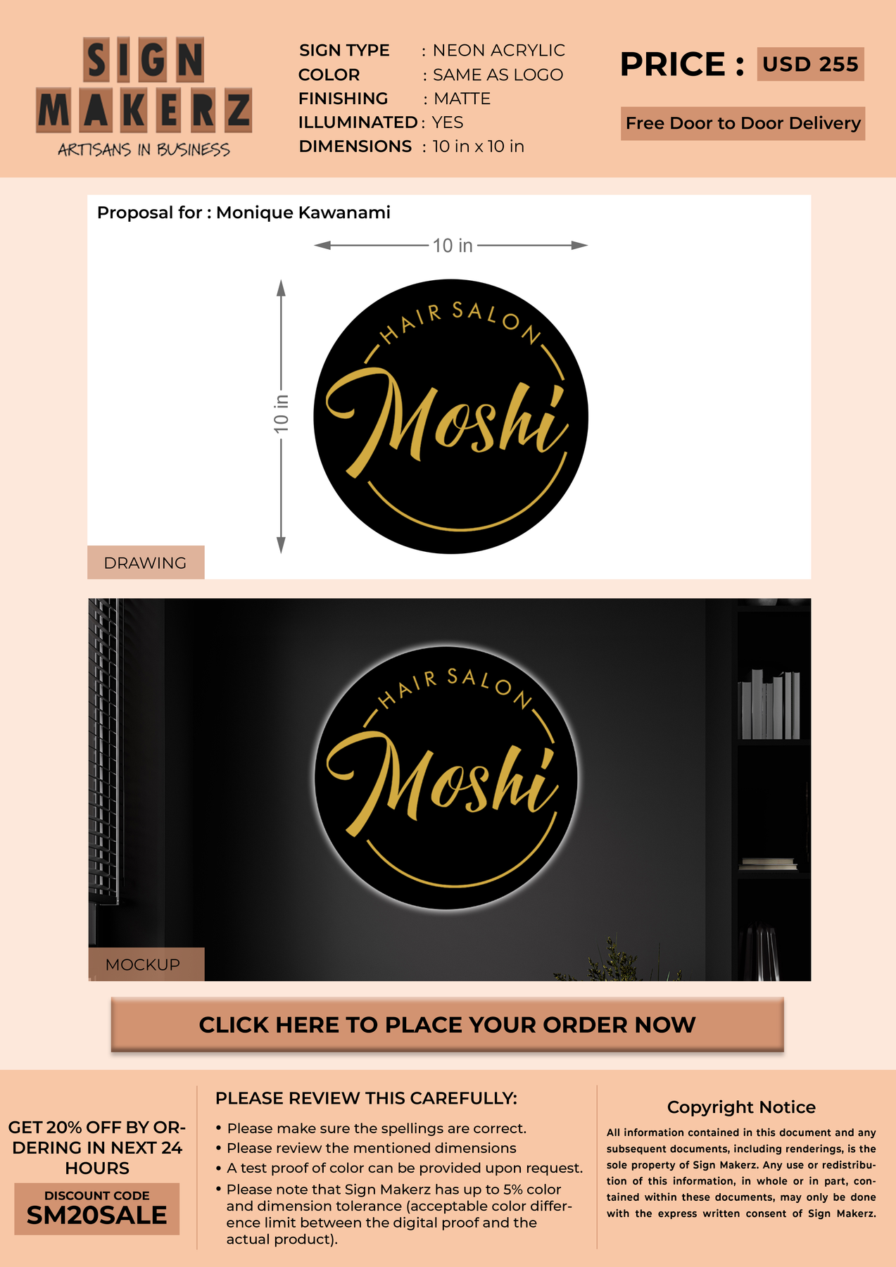 Crafted with premium material, this signage will elevate your business image, precisely mirroring your logo for a professional look.