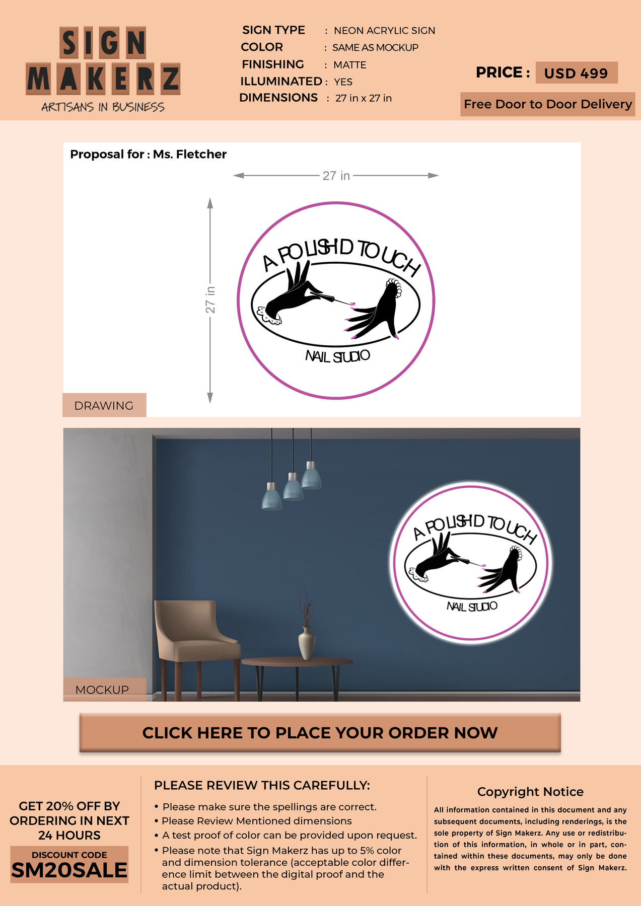 Crafted with premium material, this signage will elevate your business image, precisely mirroring your logo for a professional look.