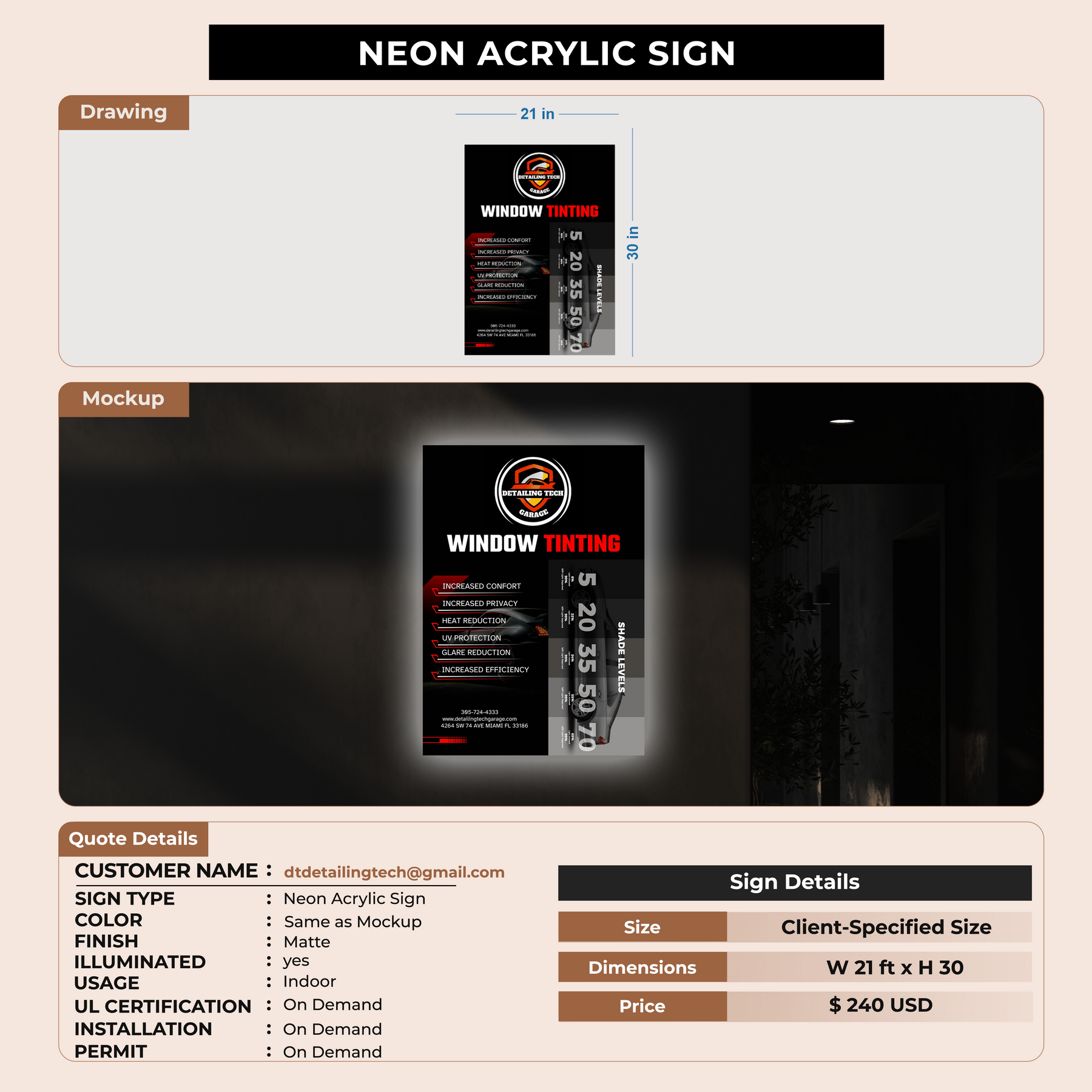 Neon Acrylic Signs for dtdetailingtech@gmail.com