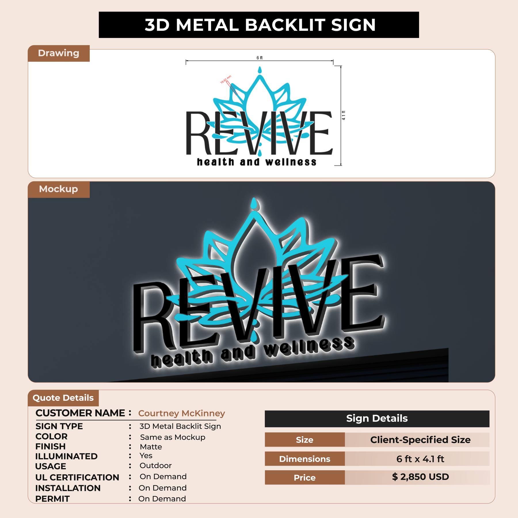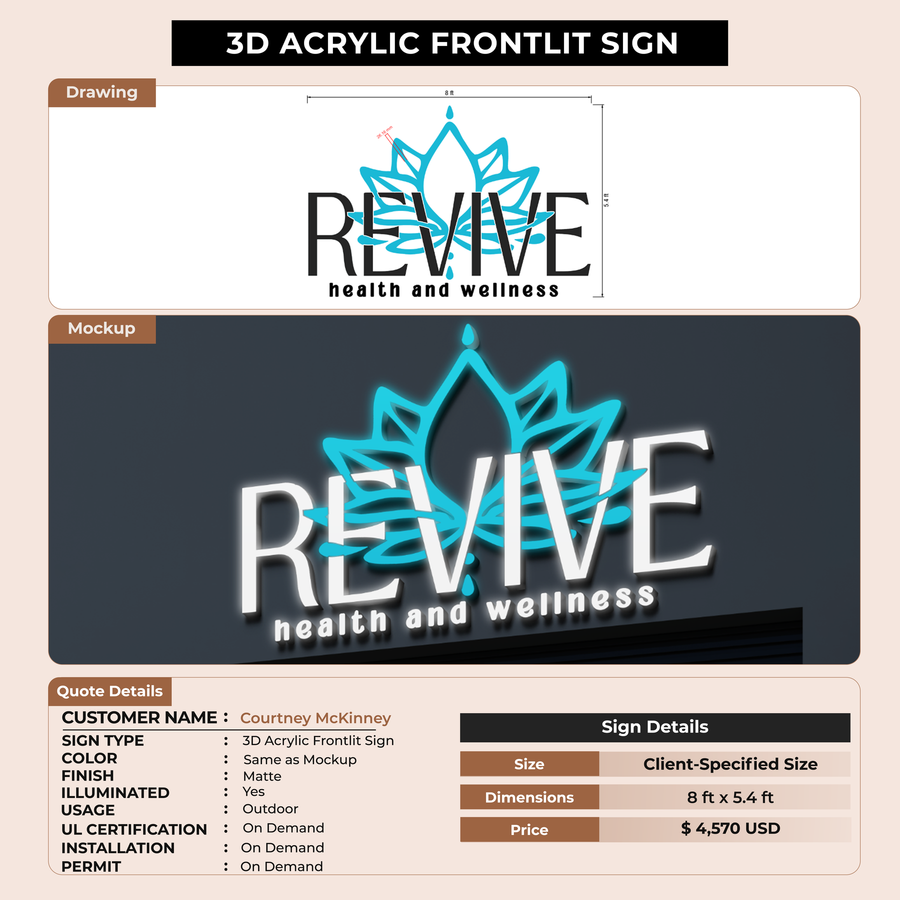 Crafted with premium material, this signage will elevate your business image, precisely mirroring your logo for a professional look.