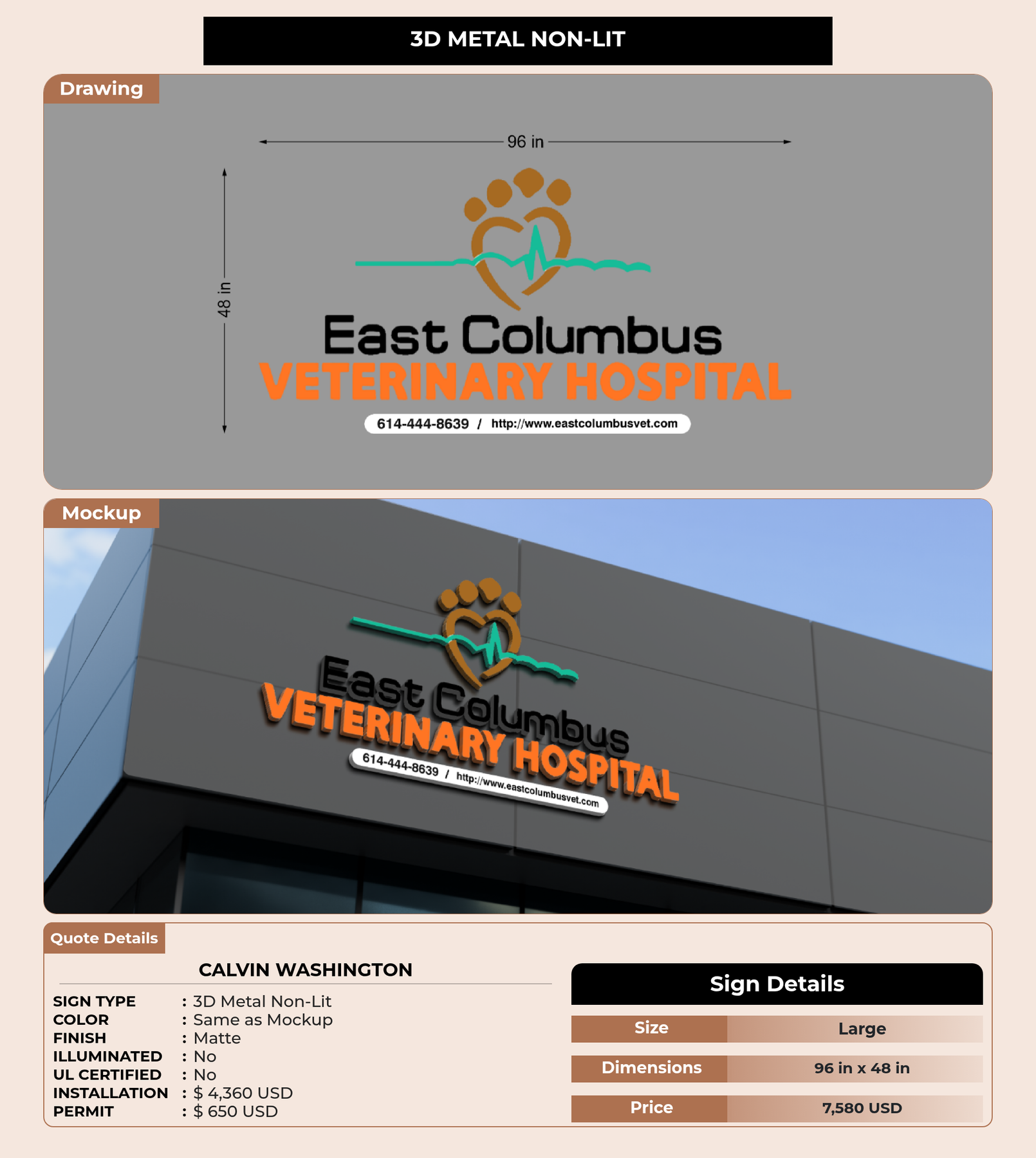 Eye-catching custom 3D sign for Calvin Washington