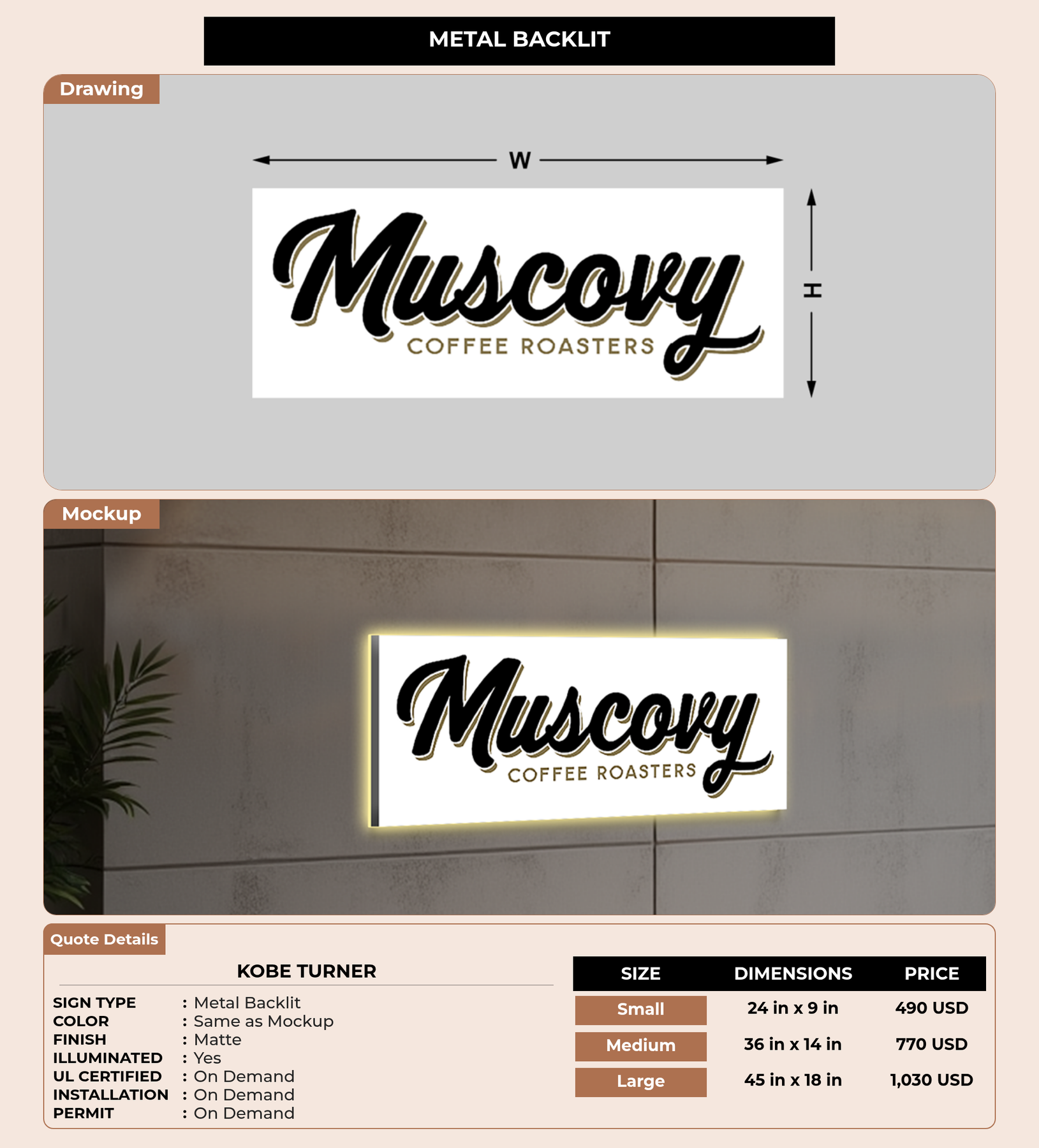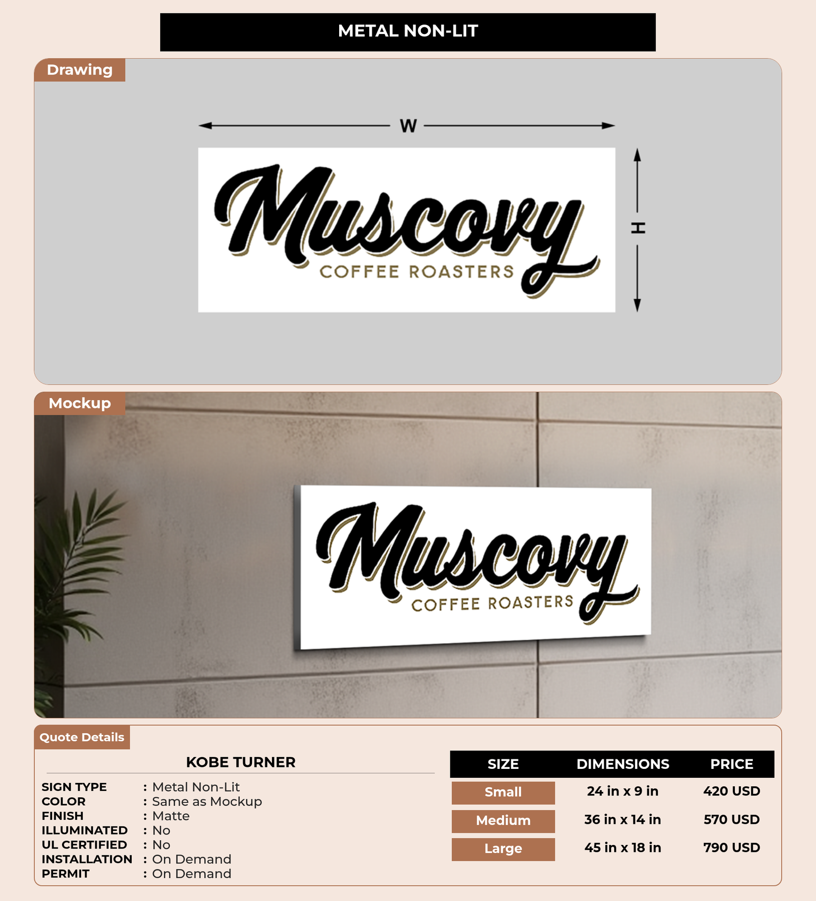 Crafted with premium material, this signage will elevate your business image, precisely mirroring your logo for a professional look.
