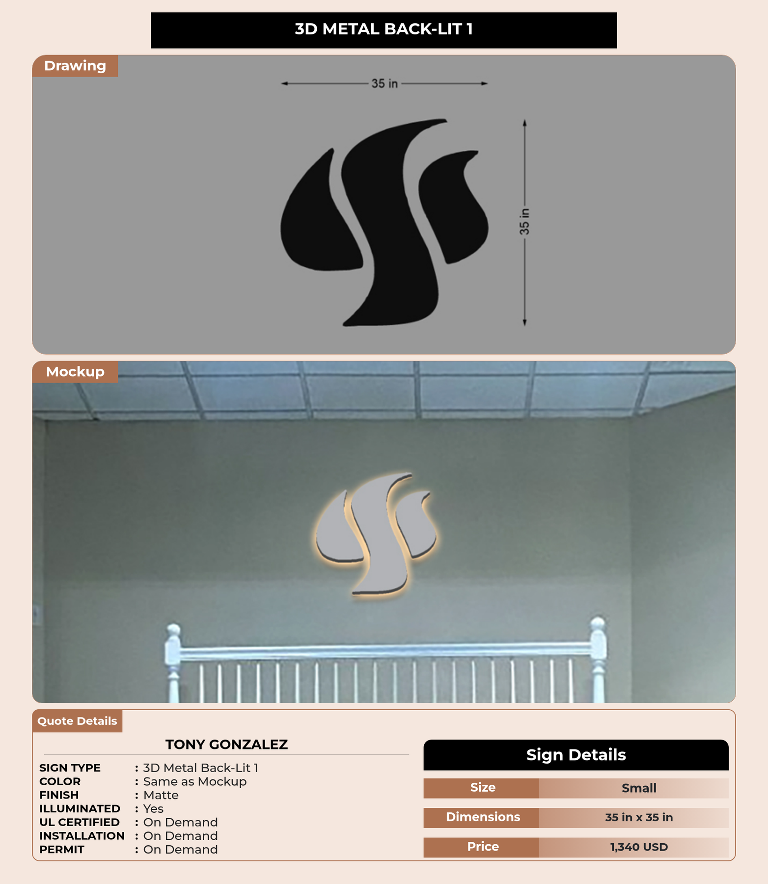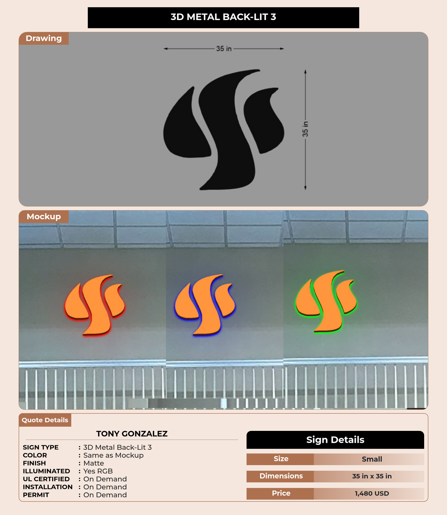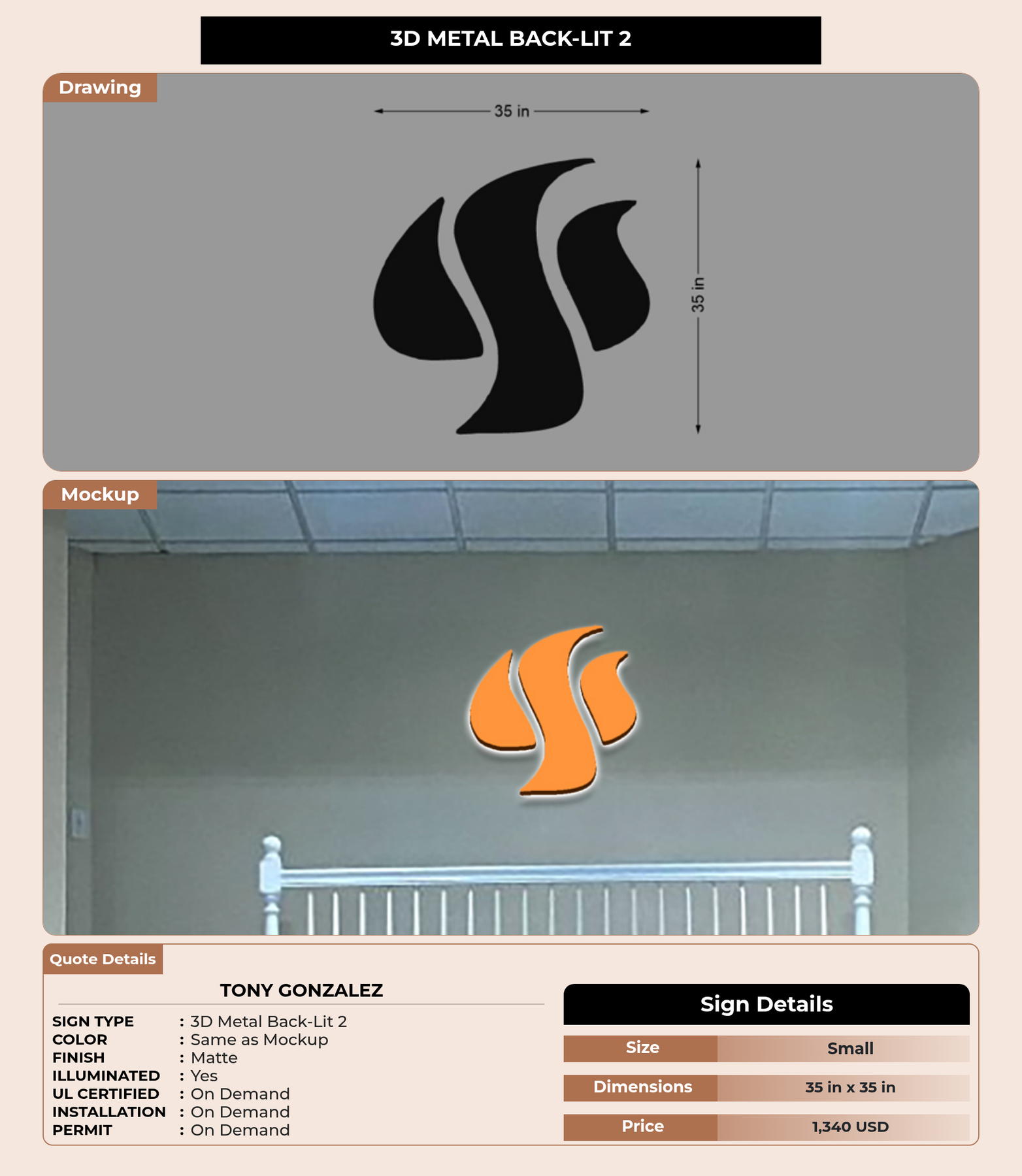 Eye-catching custom 3D sign for Tony Gonzalez